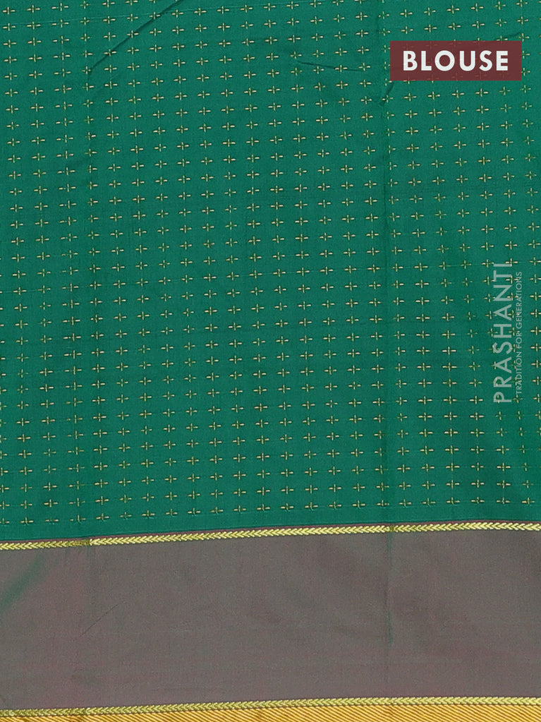 Arani semi silk saree sap green with copper zari woven buttas in borderless style