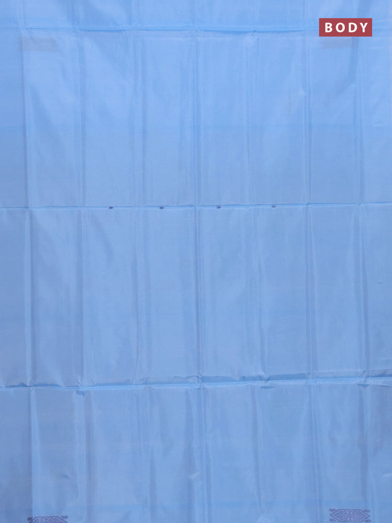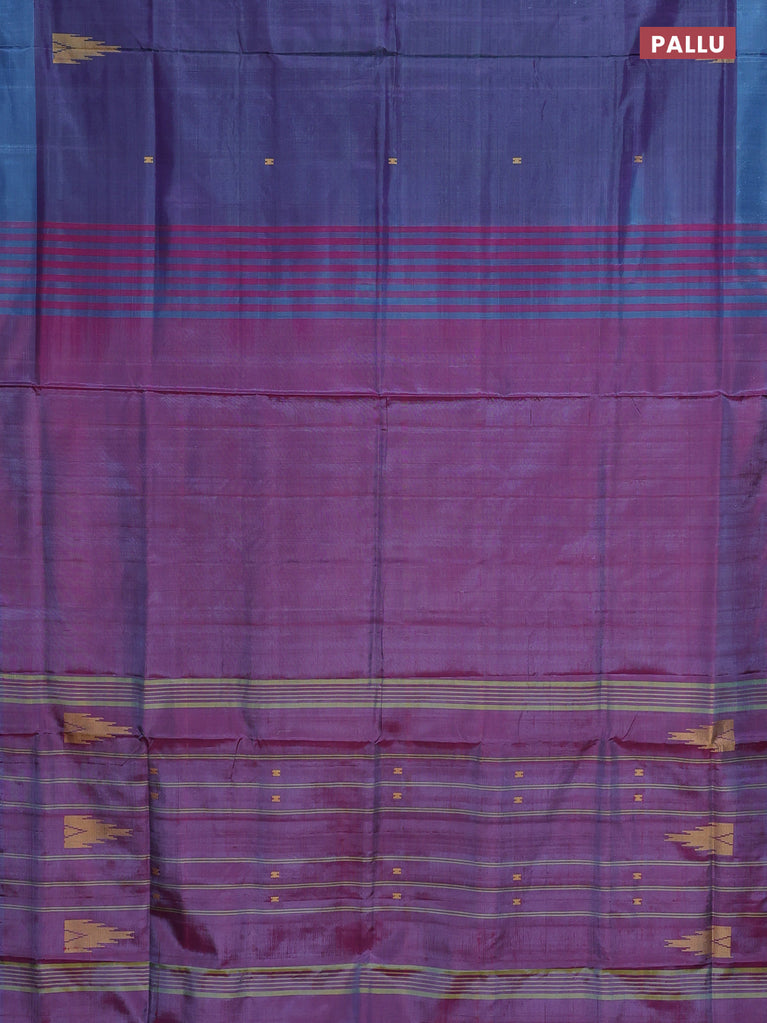 Banana pith saree blue shade and dual shade of greenish violet with thread woven buttas and contrast border