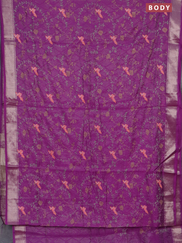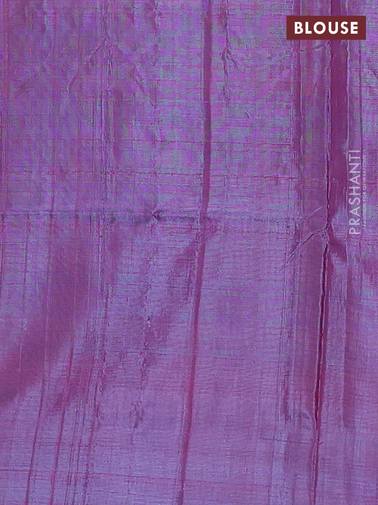 Banana pith saree dual shade of purple and cream with thread woven buttas in borderless style