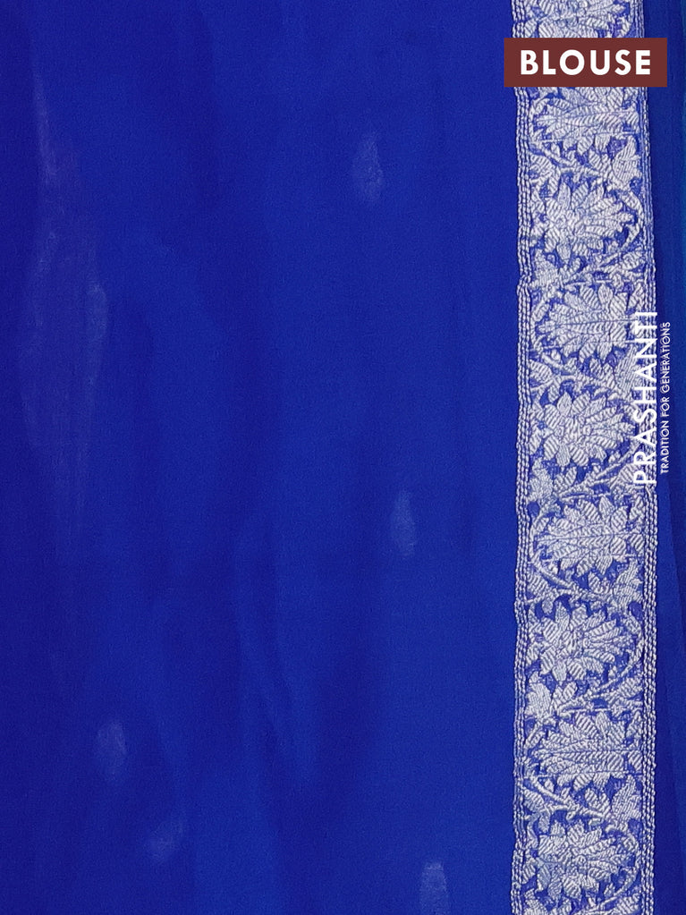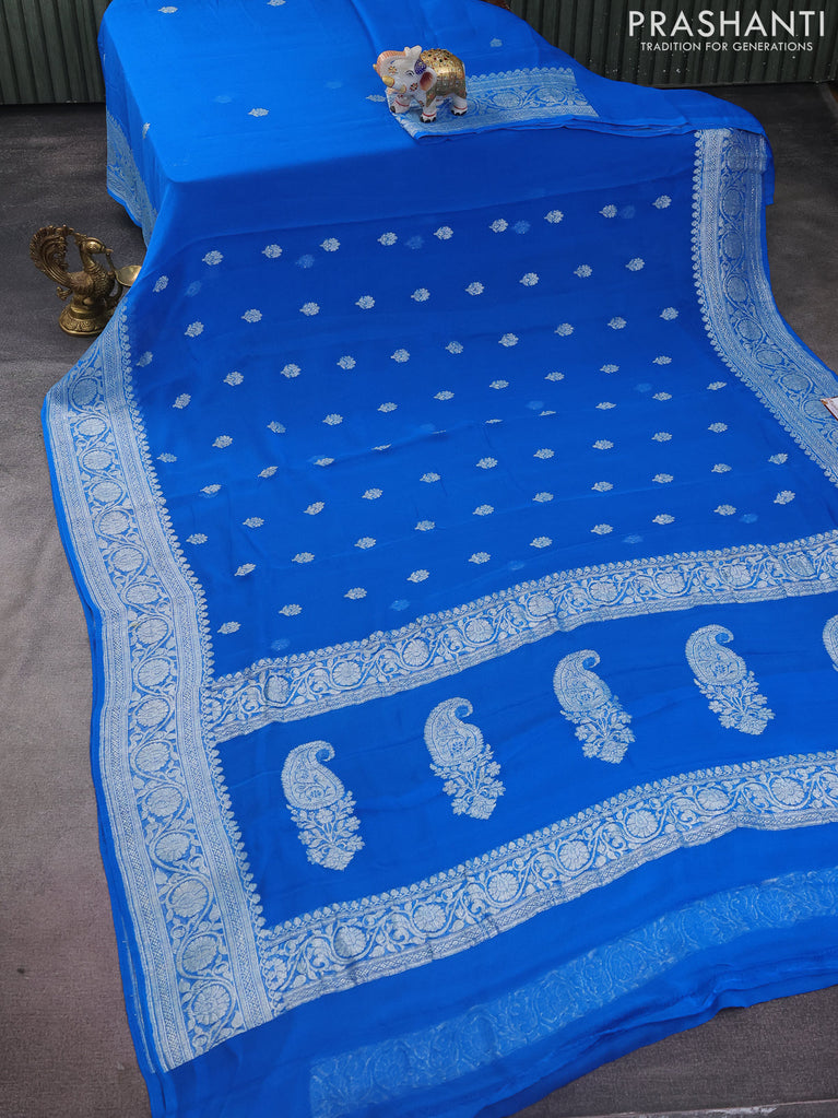 Banarasi chiffon silk saree cs blue and blue with silver zari woven buttas and silver zari woven border