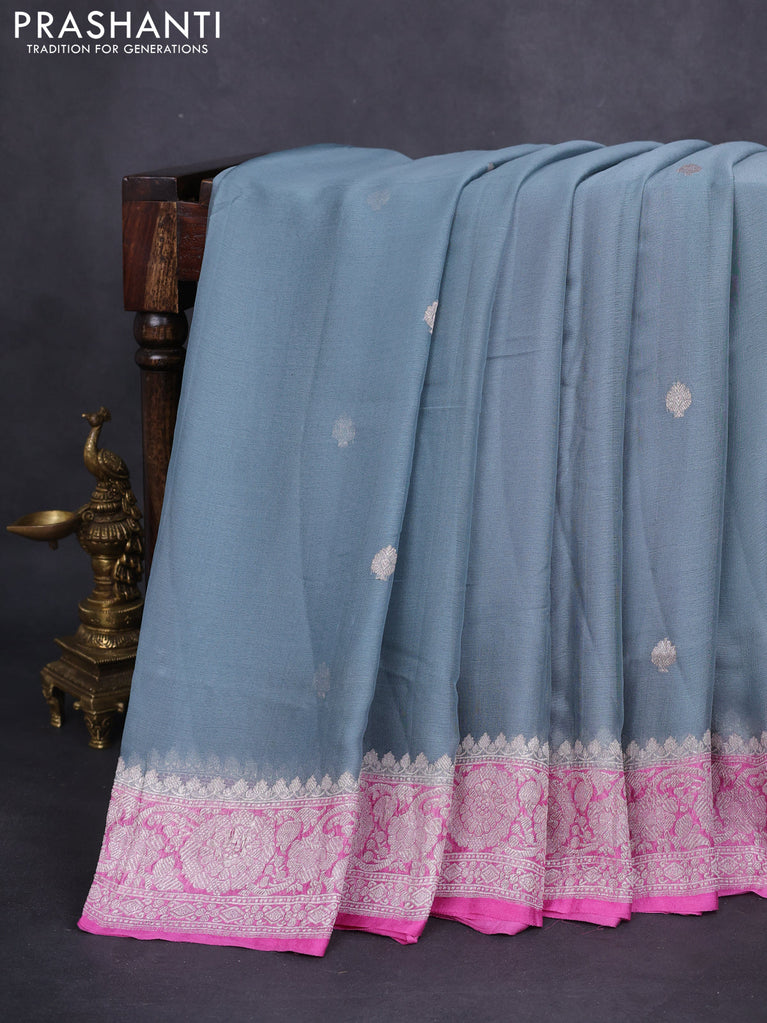 Banarasi chiffon silk saree grey with silver zari woven buttas and silver zari woven border
