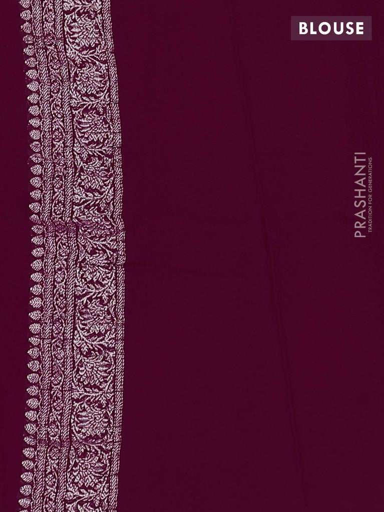 Banarasi chiffon silk saree wine shade with silver zari woven buttas and floral silver zari woven border