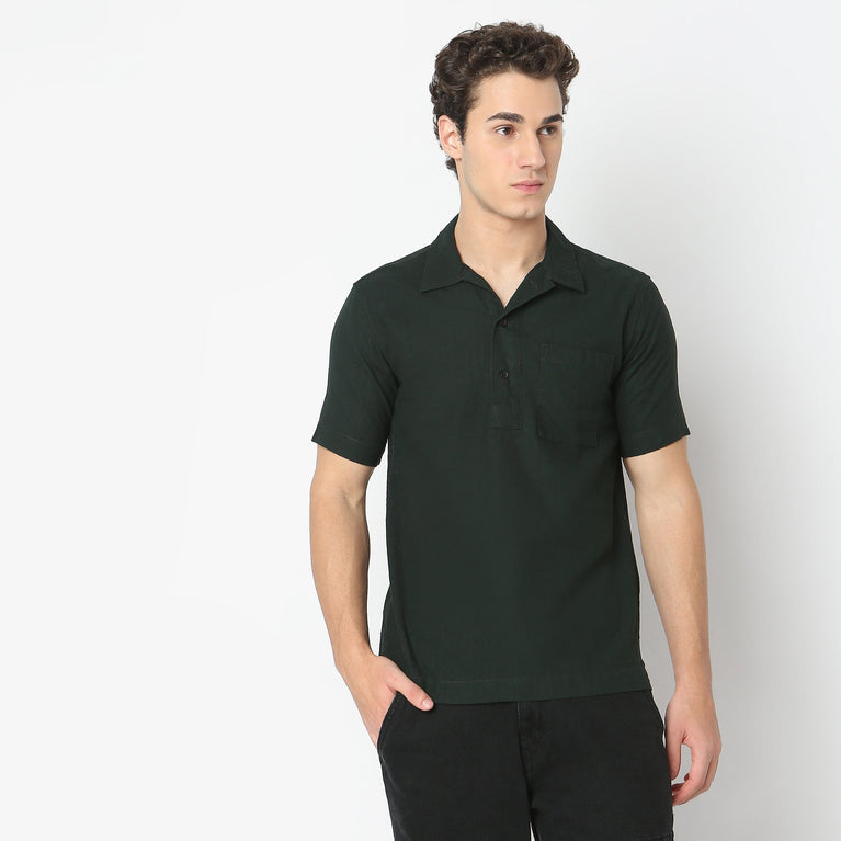Camp Collar Half Sleeve Solid Bea Shirt