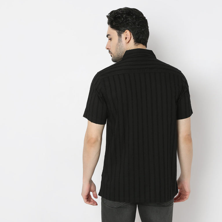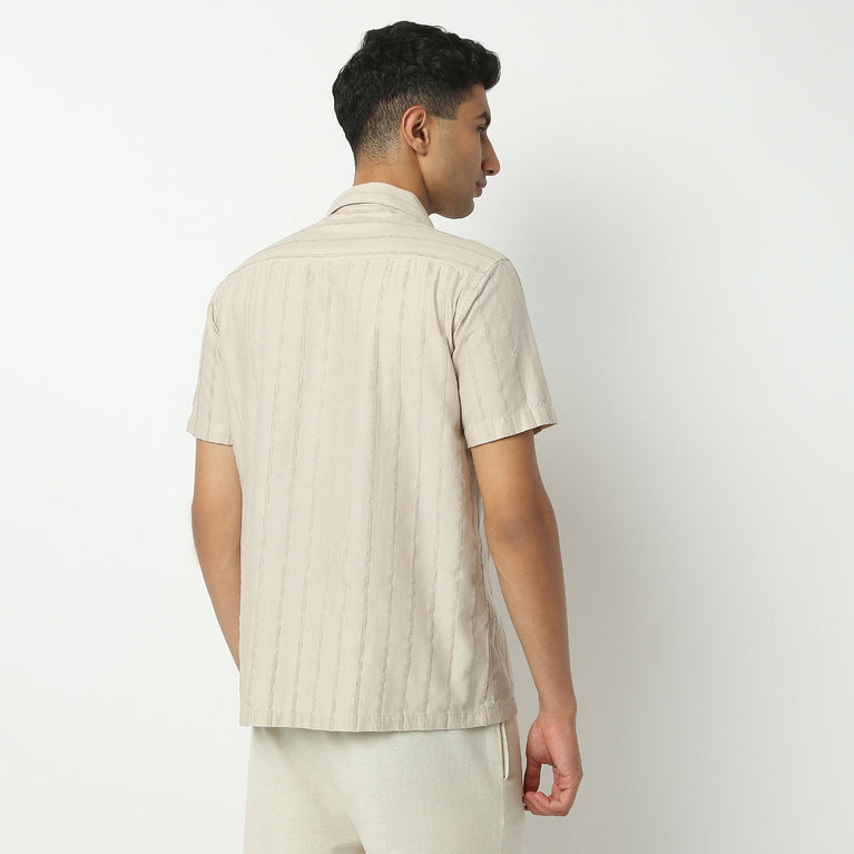 Camp Collar Half Sleeve Striped Structured Solid Bae Shirt