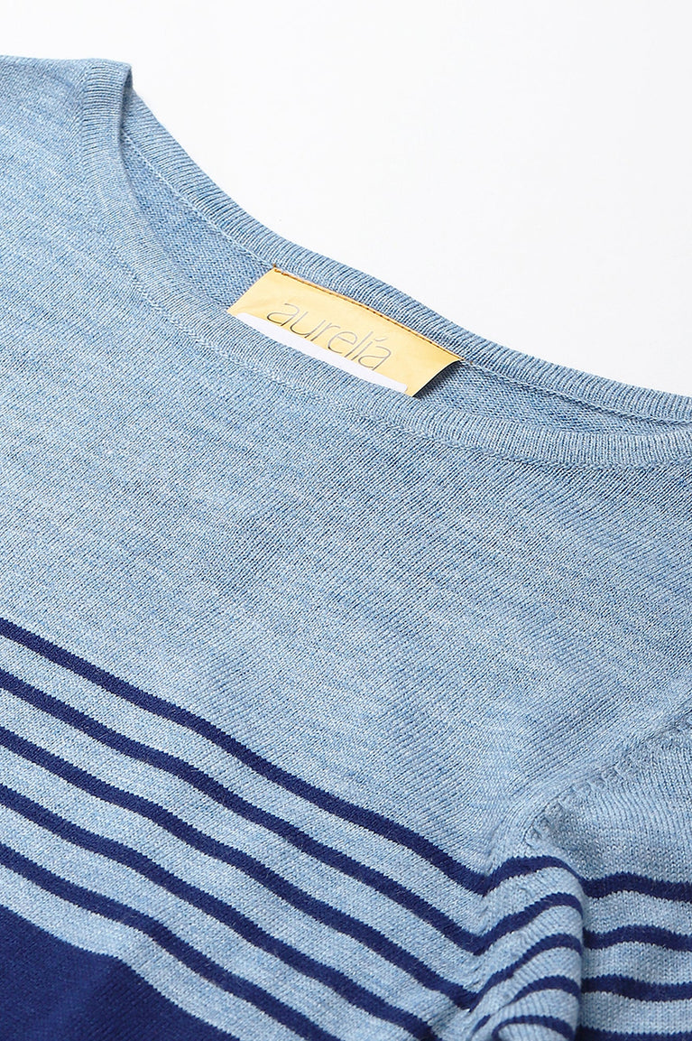 Blue Colour-Block Printed Kurta, Palazzo and Dupatta Set
