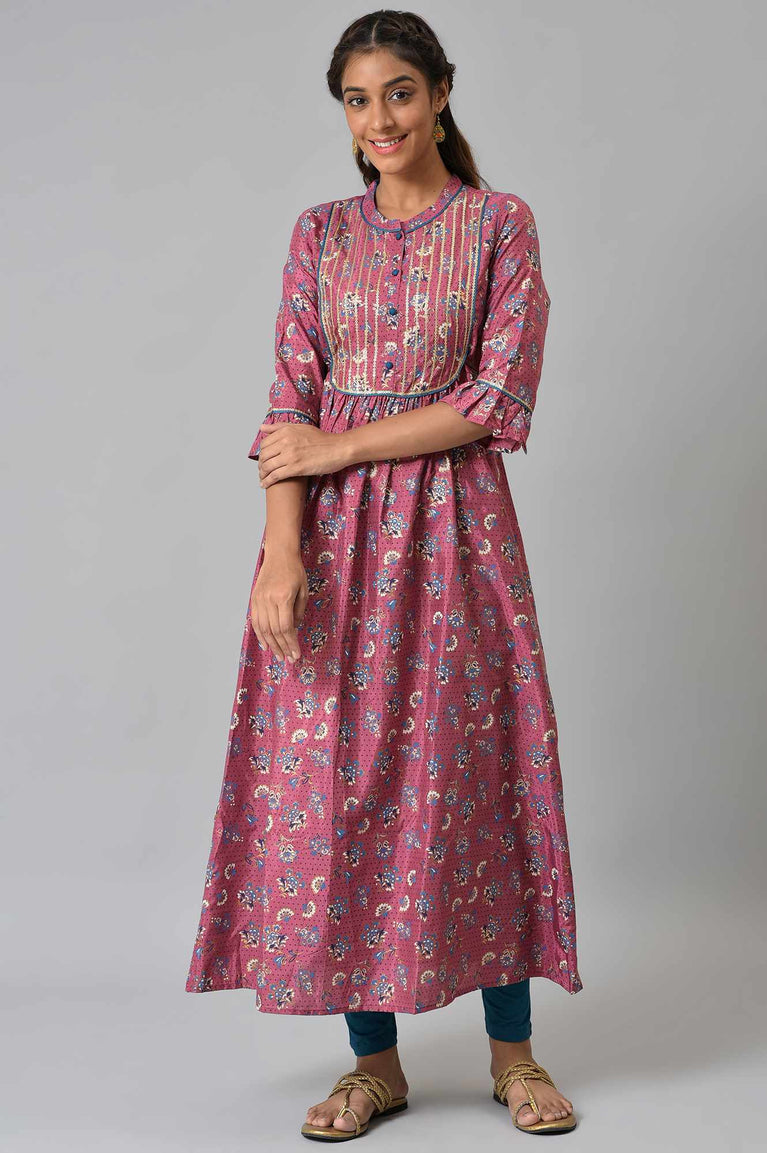 Elevate your style with our denim bobby kurta providing a textured and unique appearance.It showcases a smart mandarin collar, a self placket detail, and an inverted box pleat for added sophistication. Unique ladder inserts on the shoulder and sleeves add a trendy touch, and the denim wash look ensures a comfortable and relaxed appearance.