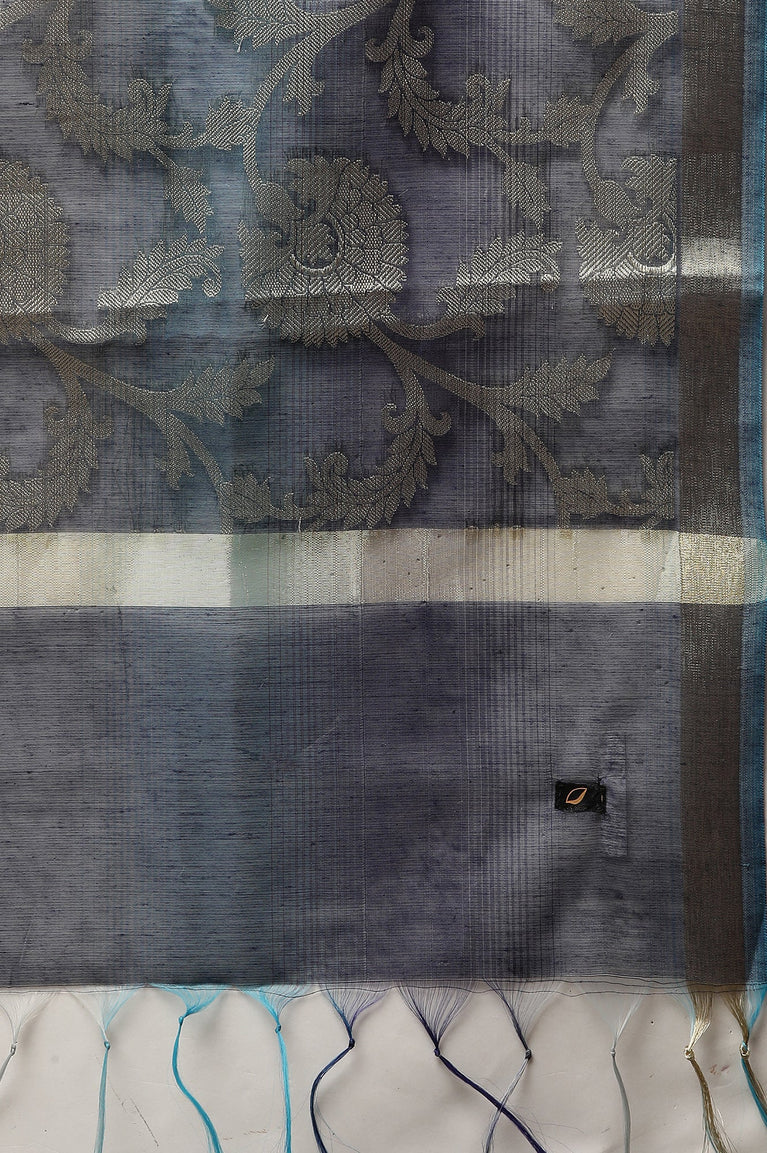 Blue Embellished Lurex Stripes Kurta, Trousers and Dupatta Set
