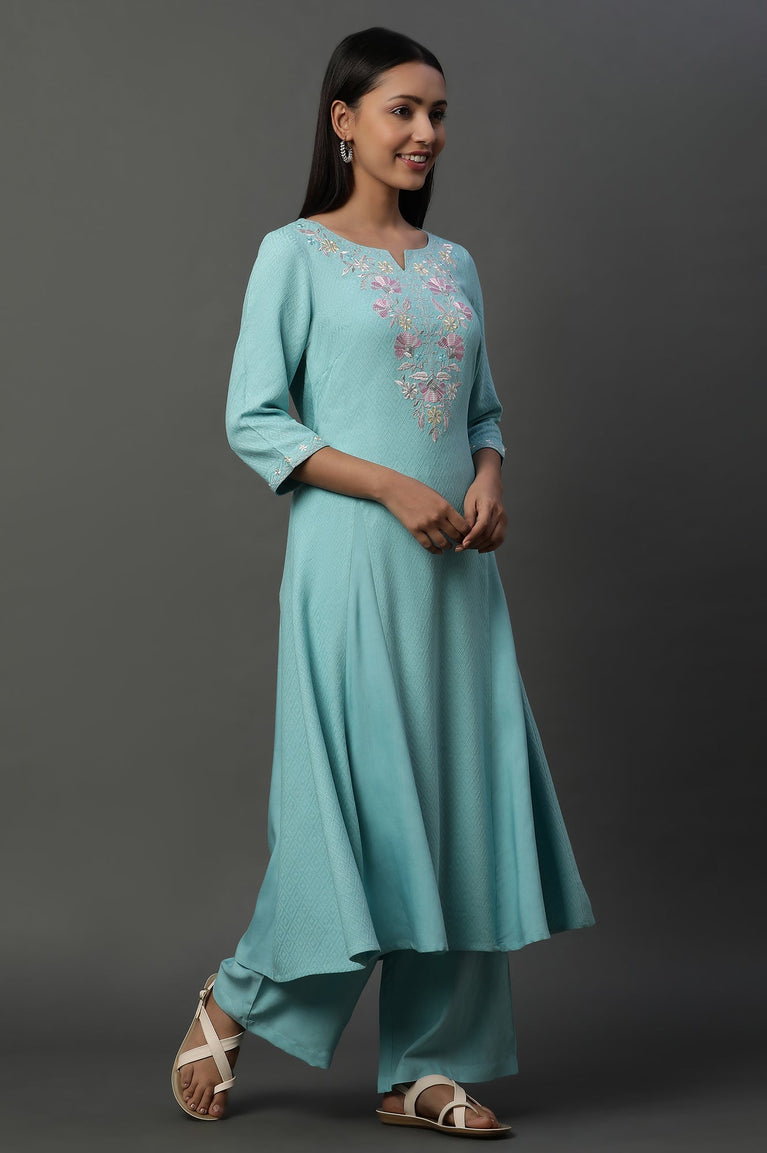 Blue Embroidered Causal Kurta and Palazzo Co-ord Set