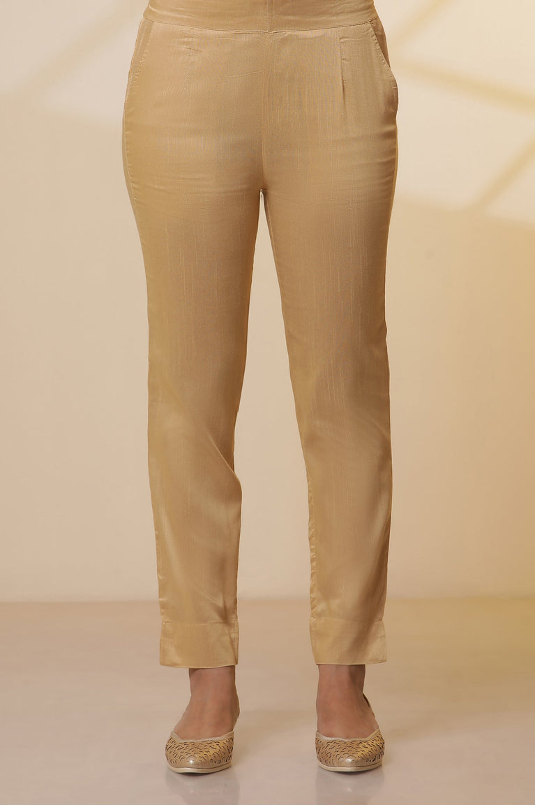 One of our best sellers is back with the twist. This blue coloured lurex stripes kurta set with golden trousers and dupatta is a must have. The kurta has embellished yoke and sleeves' hemline. It is paired with contrasting golden straight fit trousers and dupatta.