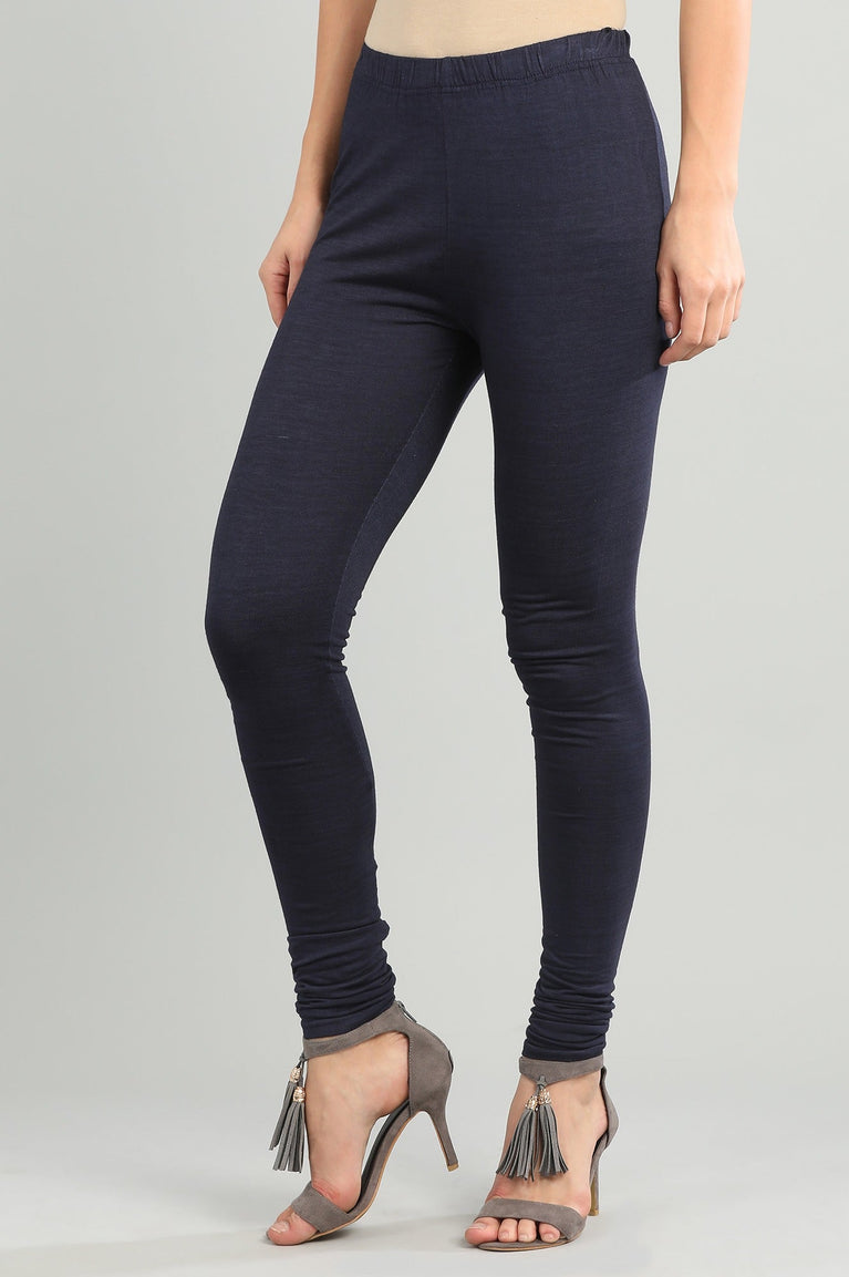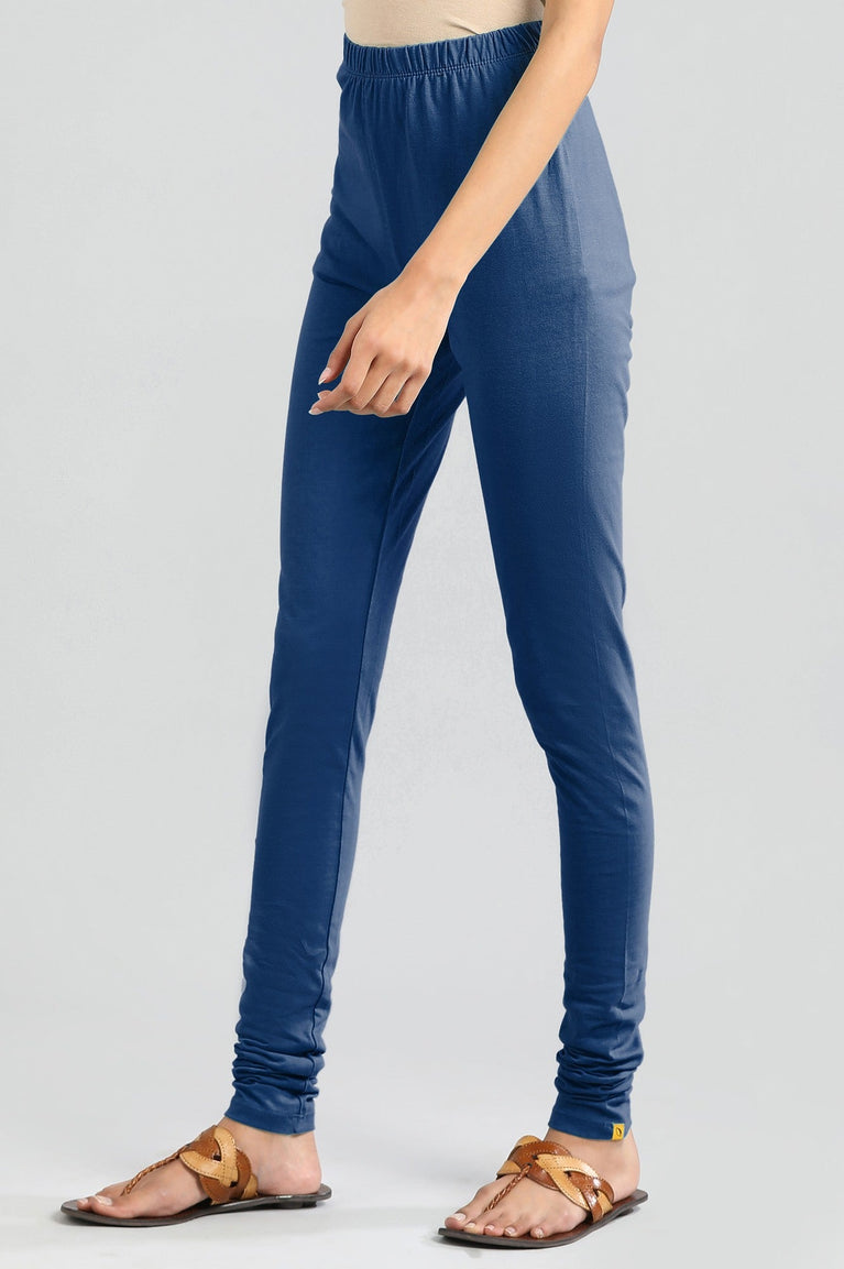 Blue solid churidar with elasticated waistband. It is made up of cotton jersey.