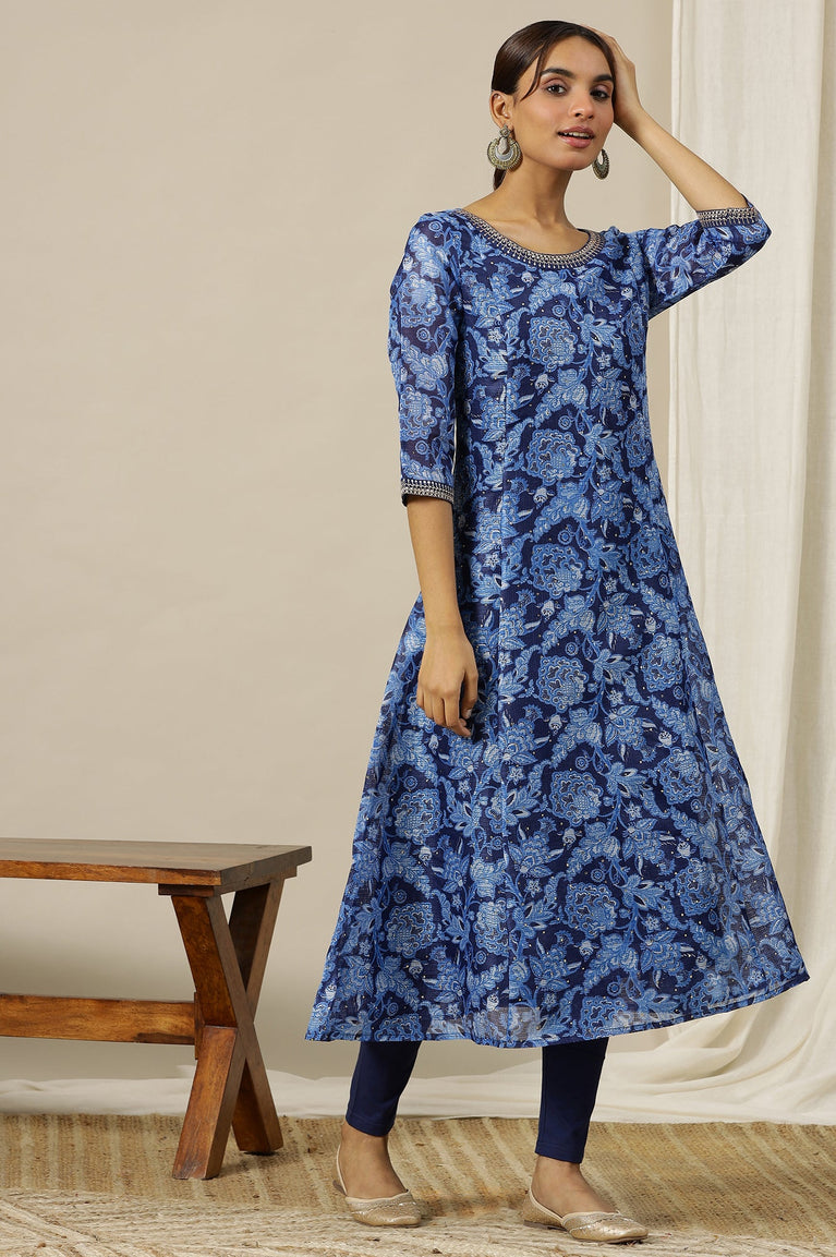 Be Ready For The Weekend-Chilling Look In This Chic Blue Solid kurta And Yellow Printed Trousers Set. The kurta Has Round Neck And Designed In Straight Silhouette. And The Trousers Have Floral Print On It.