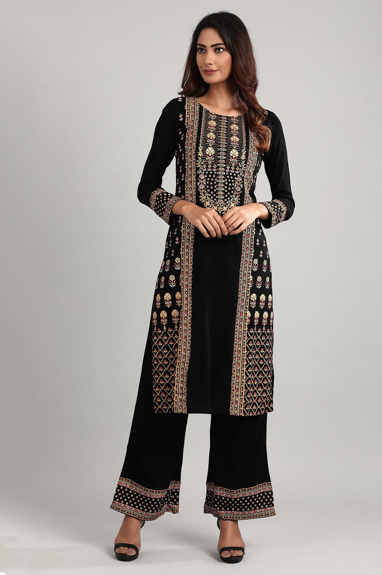 Black Printed kurta-Palazzo Set