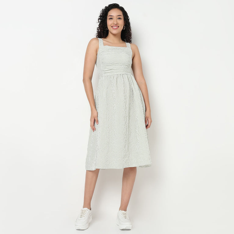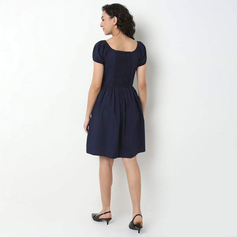 This solid pattern dress has a square neck and full sleeve. Made from polyester, it is soft and comfortable to wear.