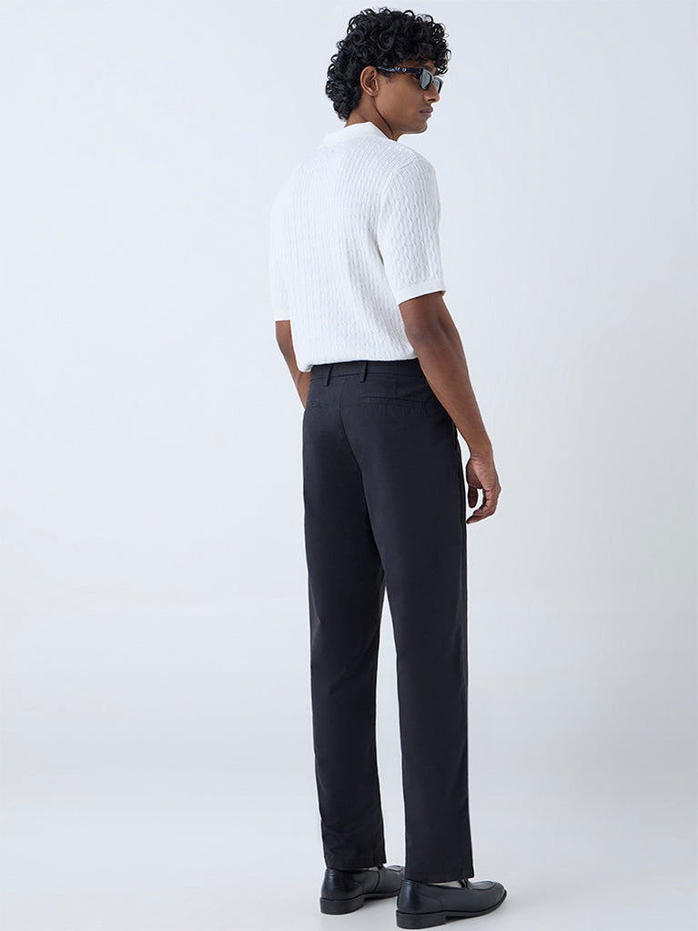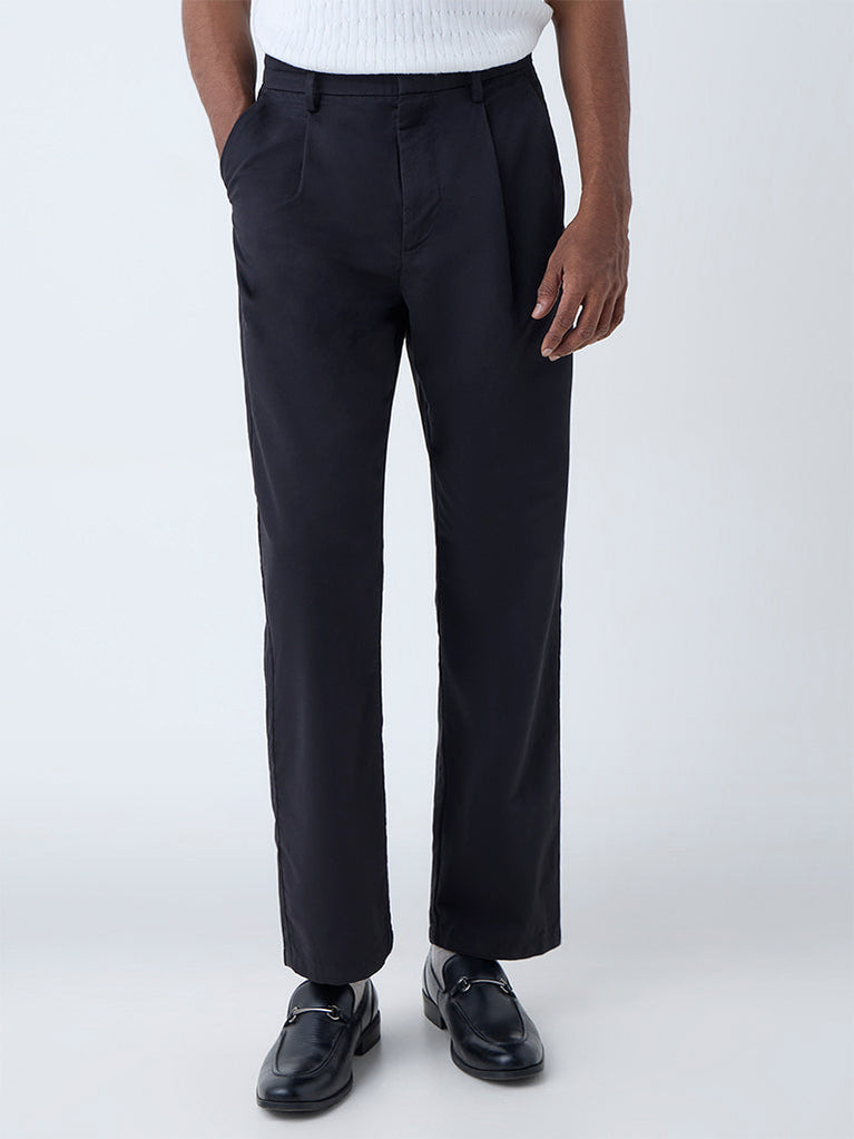 Ascot Black Relaxed-Fit Mid-Rise Cotton-Blend Trousers