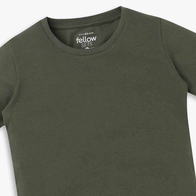 These solid pattern t-shirt has crew neck and half sleeve. Made from polyester, your kid's feel comfortable wearing the product.