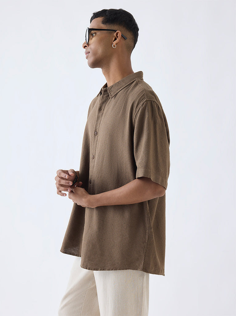 Ascot Brown Solid Relaxed-Fit Linen-Blend Shirt