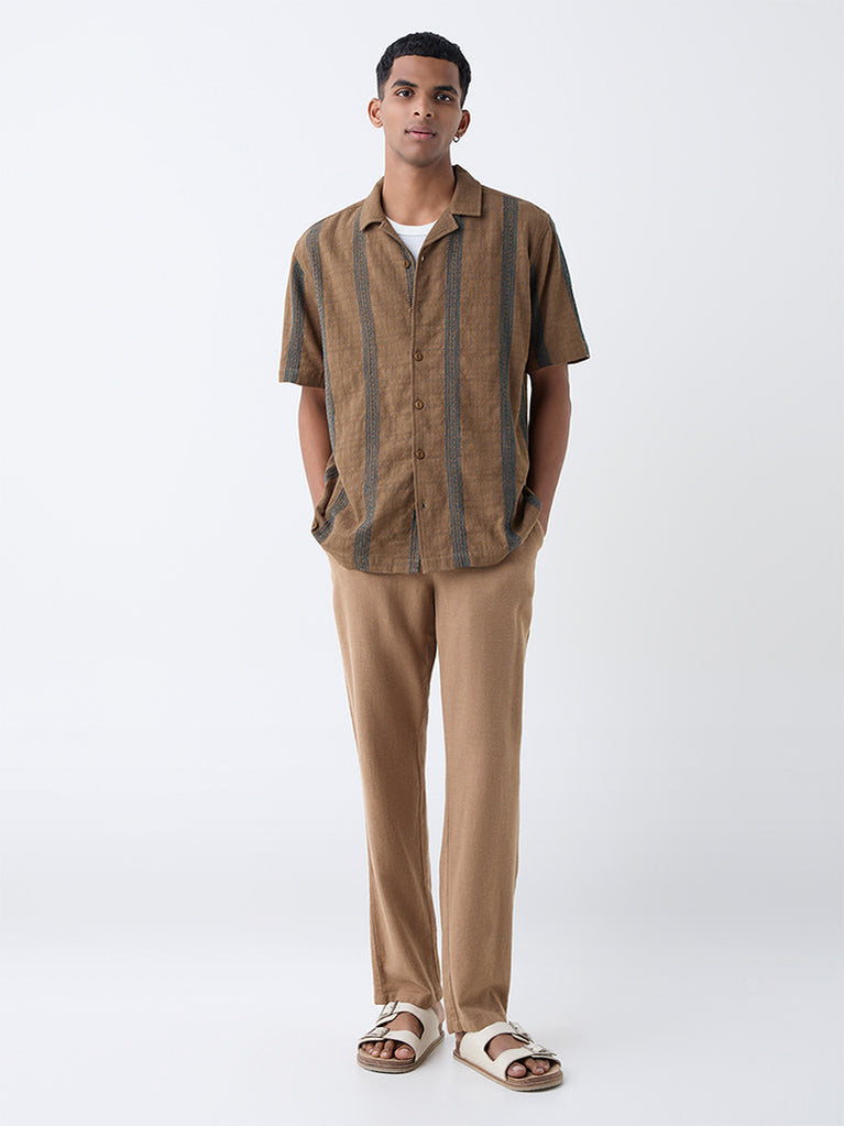 ETA Brown Pinstriped Relaxed-Fit Cotton Shirt - Exclusive