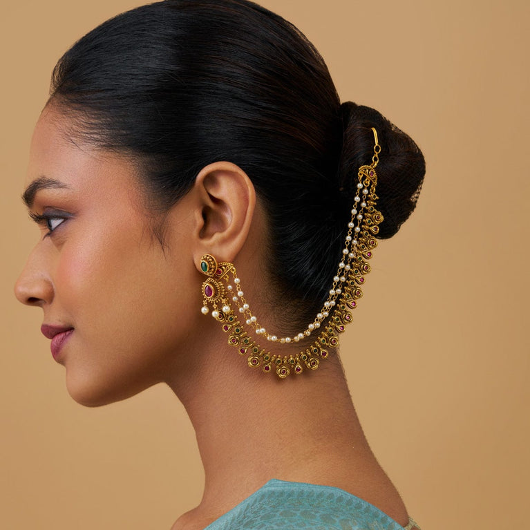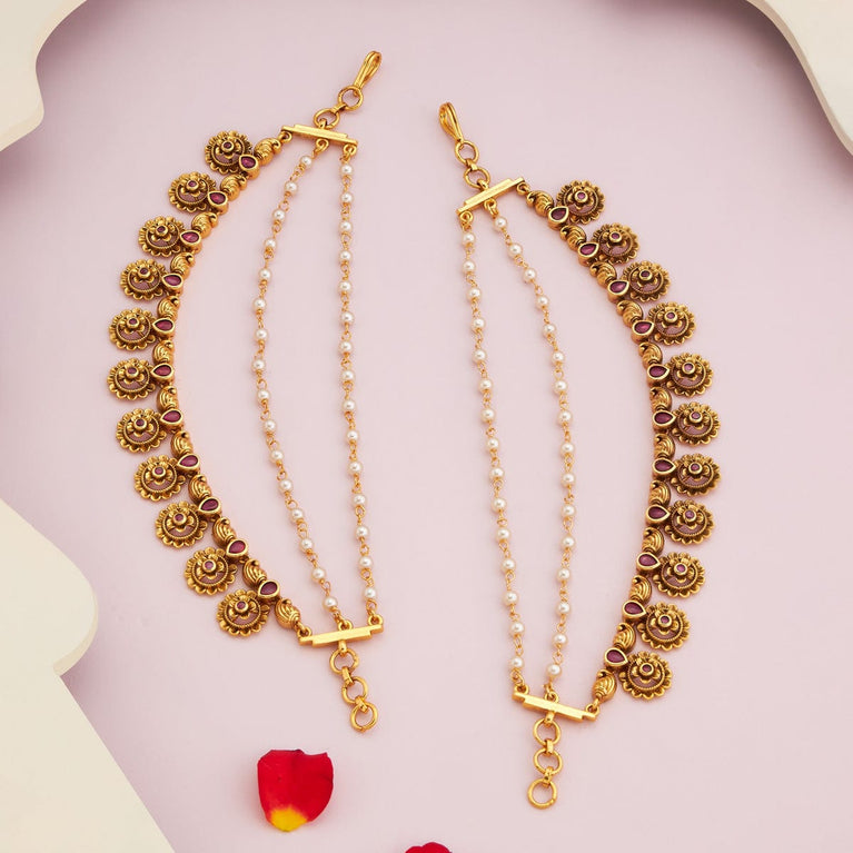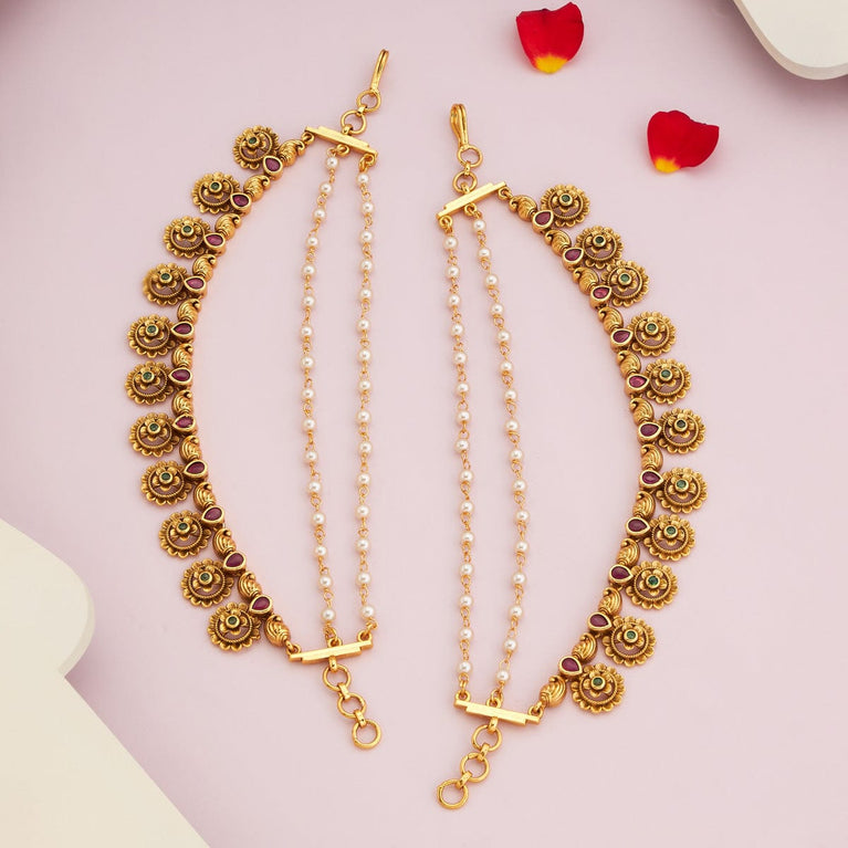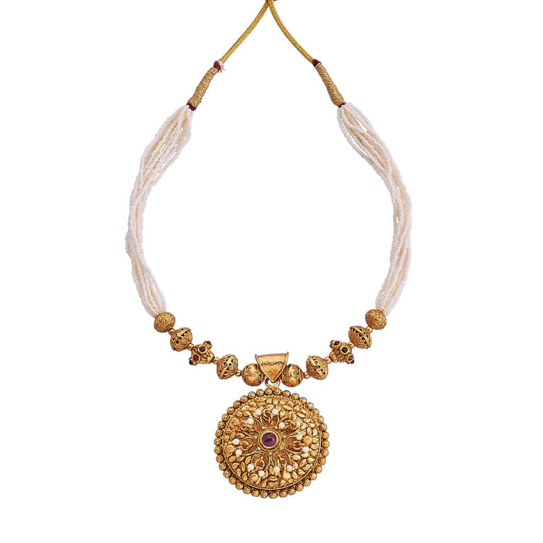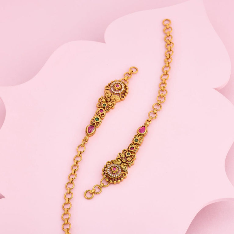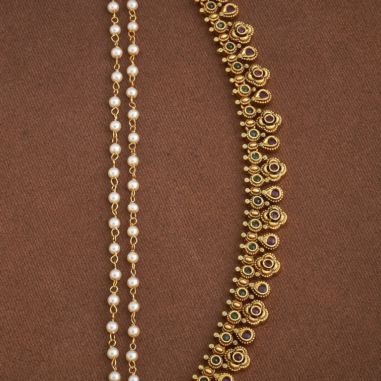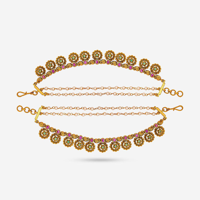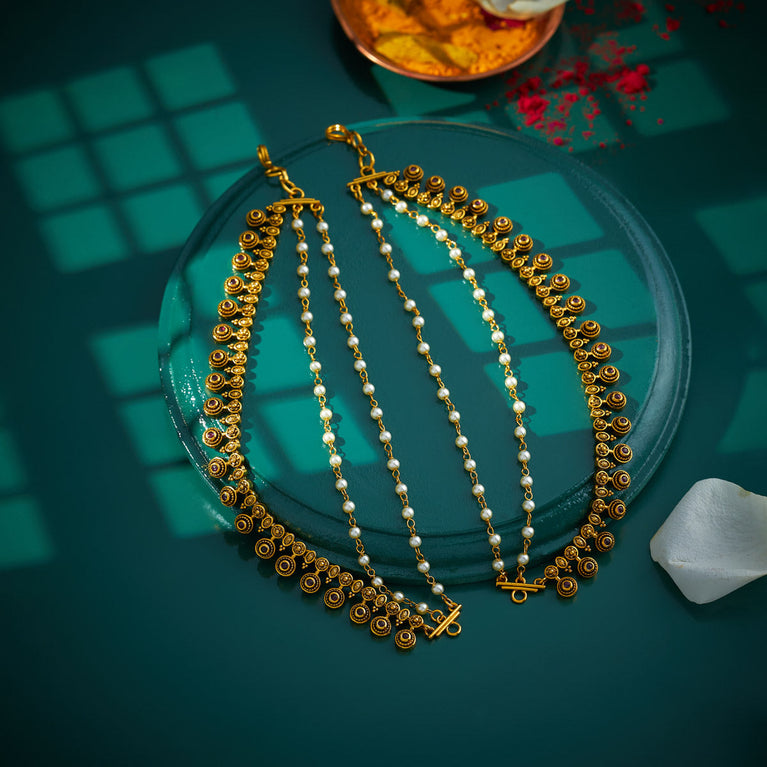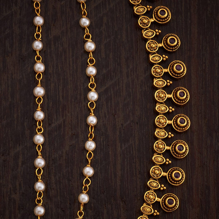 Kushal's Fashion Jewellery Antique MatilGet a traditional look with our collections of antique matil. Made of quality copper alloy, this matil will elevate your conventional look when paired with traditional attire. Our synthetic stones and beads ensure the shimmering look of the jewellery. This gold-polished matil will add a fresh look to your traditional fashion.