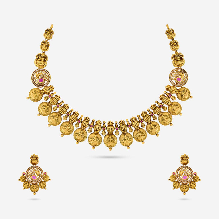 Kushal's Fashion Jewellery Flower Motif Antique TikkaIdeal for those who appreciate the charm and elegance of a decent look! Crafted with precision, our antique tikka boasts a queenly allure that never fails to wow. It's encrusted with brilliantly gleaming synthetic ruby and green-coloured stones, which adds an irresistible sparkle to your regal charm. Known for its decent appearance, it blends the traditional aesthetic with a contemporary sensibility.
