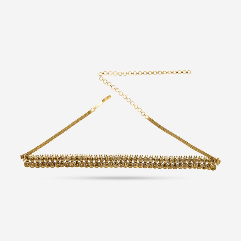 Kushal's Fashion Jewellery Flower Motif Antique BeltIf you are looking for a belt to match the elegance of your ethnic outfits, take a look at our latest antique belt with gold polish on the green and ruby stones. The eye-catching work details on this belt allow it to blend with all outfits and occasions. Grab yours now.