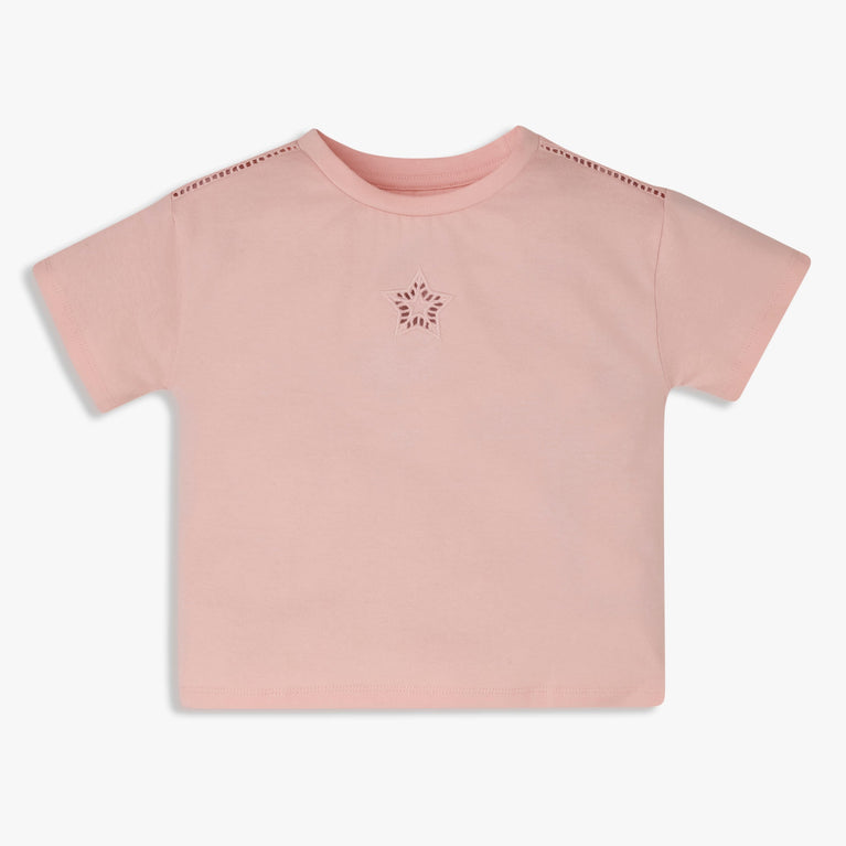 Gia Blush Pink Floral Embroidered Cotton T-Shirt