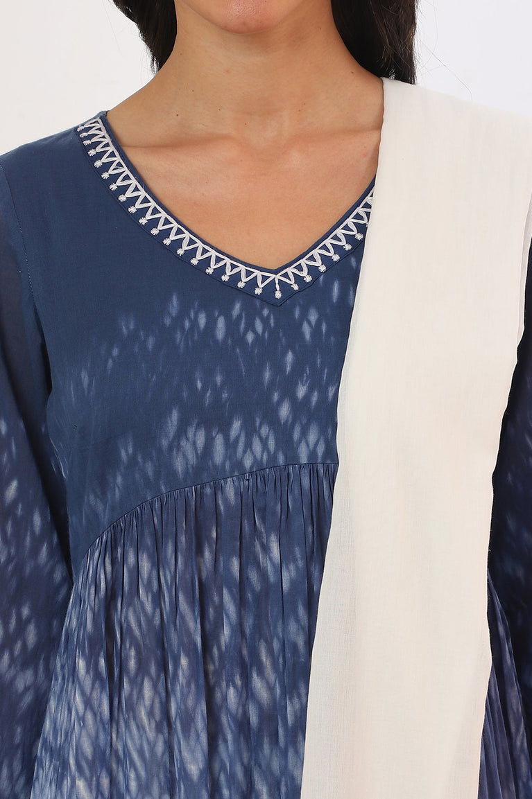 Blue Shibori Printed A-Line Pure Cotton Kurta