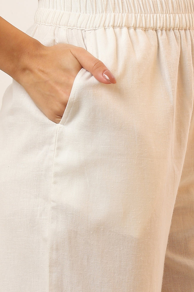 Micro-geometric precision weaving defines your traditional style with this flared palazzo. Featuring a geometric print and partially elasticated waistband, it offers high comfort with its premium woven cotton fabric. Imagine pairing this ankle-length fashion bottom with a kurta and sandals for a trendy look. A must-have in your wardrobe for casual outings.