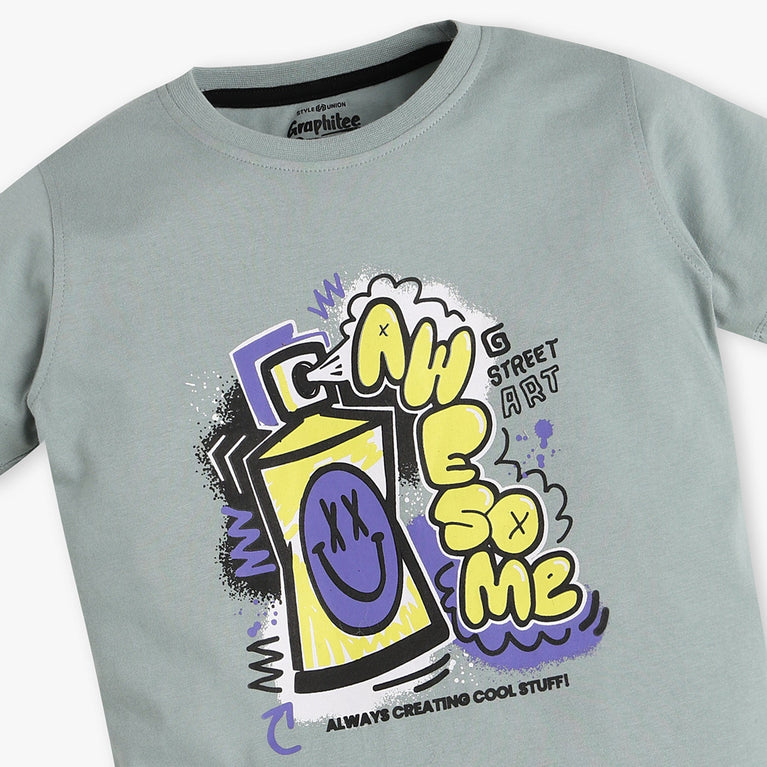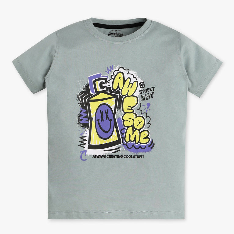 Discover the perfect blend of comfort and style with our Boys Crew Neck Graphitee. Made from 100% cotton, this t-shirt offers a soft touch against the skin, ensuring all-day comfort for your little one. The graphic pattern adds a playful touch, making it a versatile choice for any casual outing.