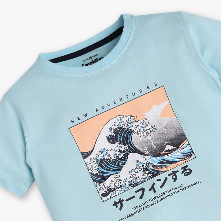 Boys Crew Neck Printed Weekend Patch Pocket With T-Shirt