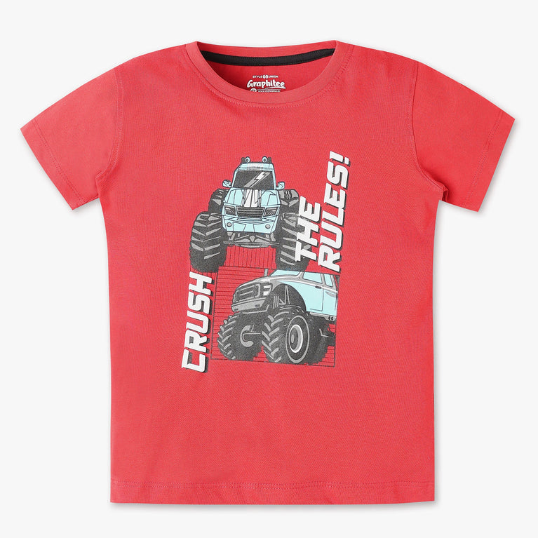 Experience the perfect blend of comfort and style with our Boys Crew Neck Graphic T-Shirt. Crafted from 100% cotton, this t-shirt offers a soft touch against the skin, ensuring your child stays comfortable throughout the day. The vibrant graphic pattern adds a playful touch, making it a versatile choice for any casual outing.