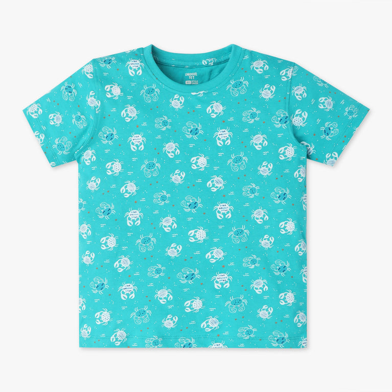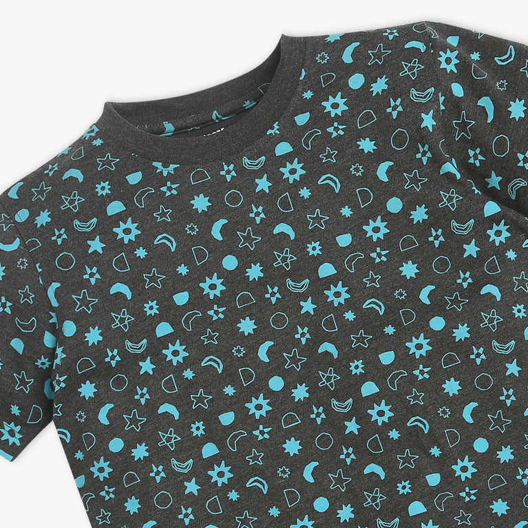 Boys Crew Neck T-shirt and Shorts All Over Printed Sleepwear Set