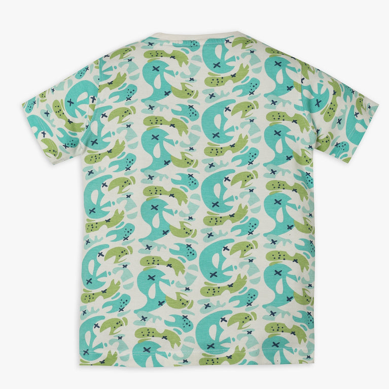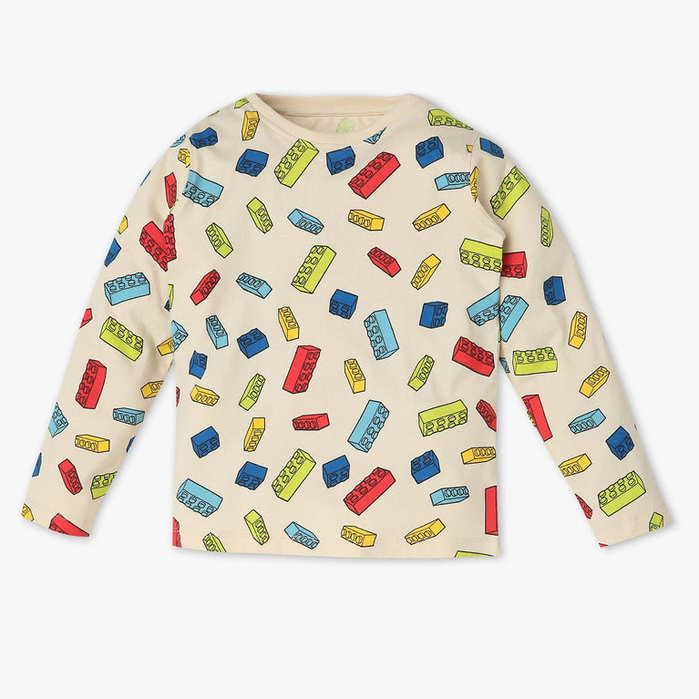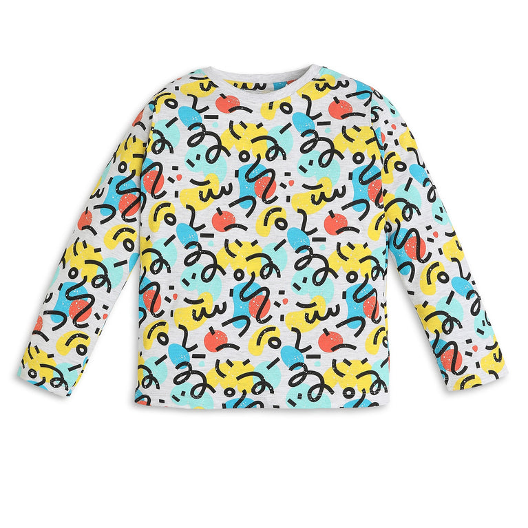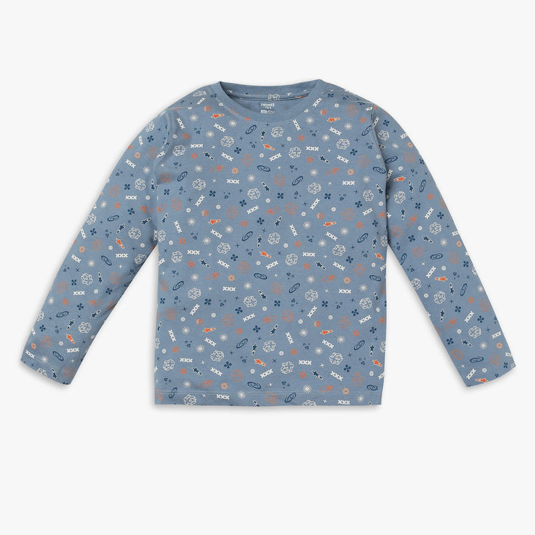 These printed pattern t-shirt with pyjama set has crew neck and full sleeve. Made from cotton, your kid's feel comfortable wearing the product.