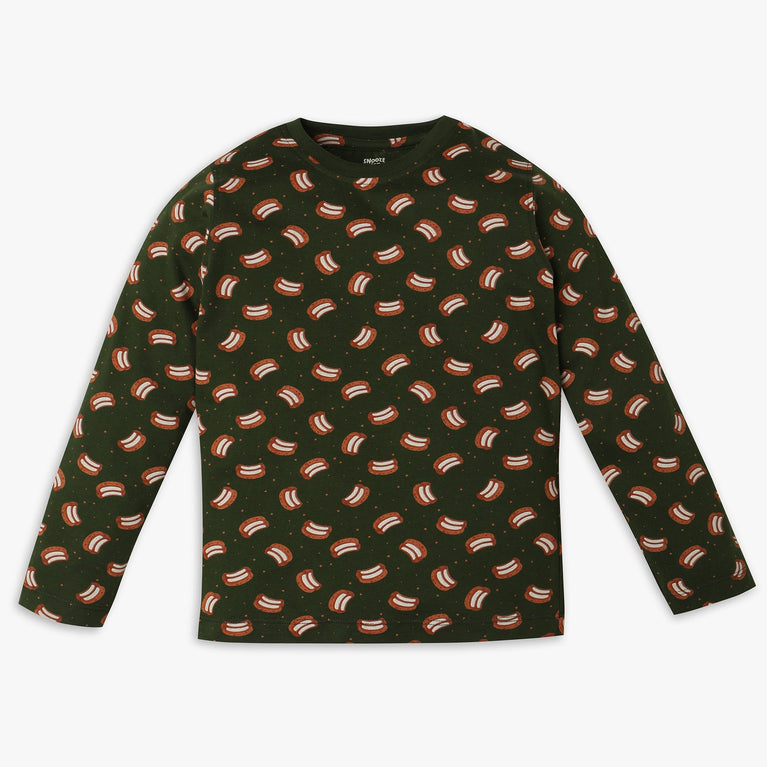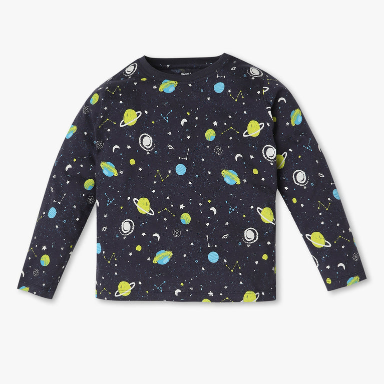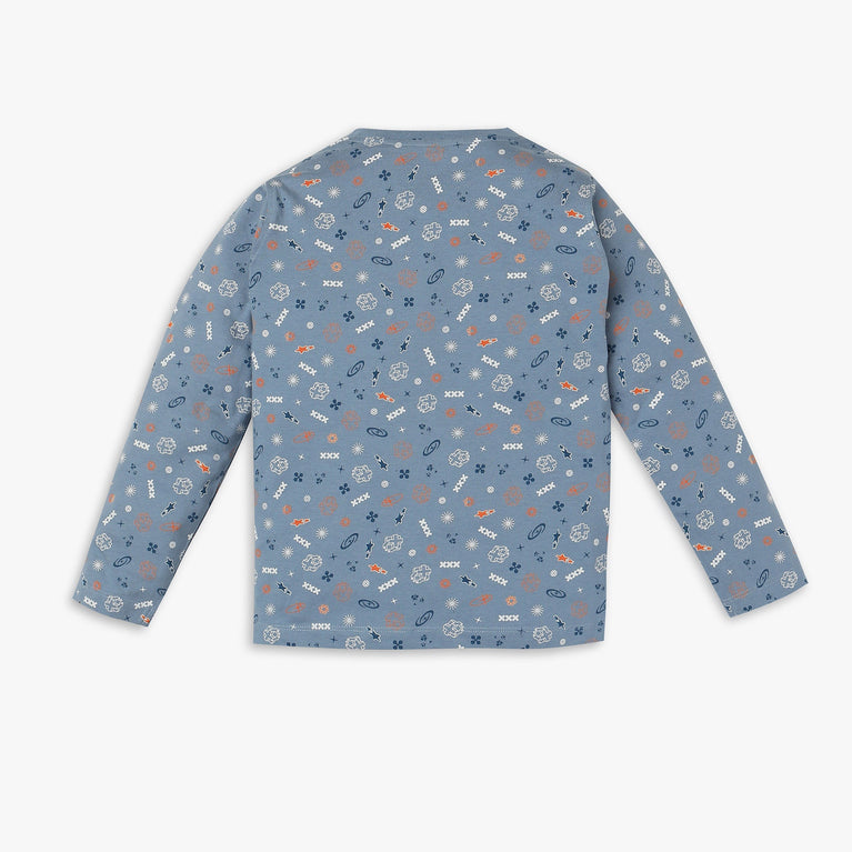 These printed pattern t-shirt with pyjama sleepwear set has crew neck and full sleeve. Made from cotton, your kid's feel comfortable wearing the product.