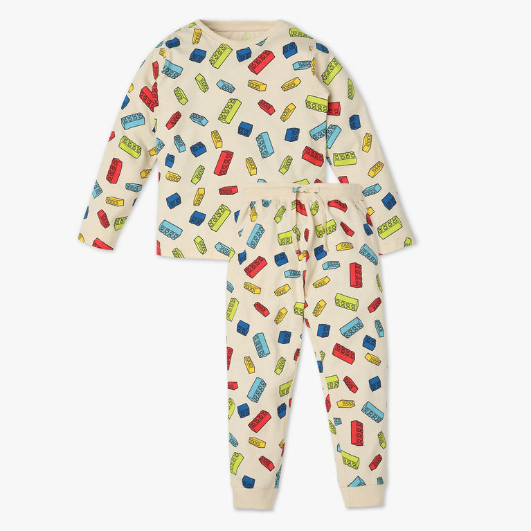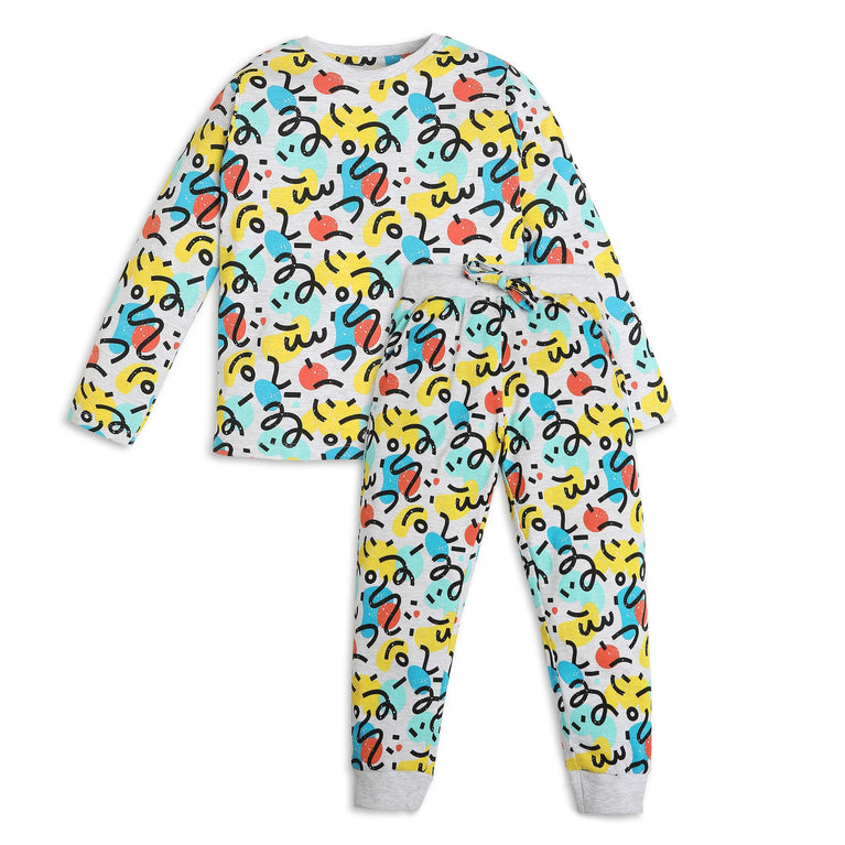 This adorable printed sleep set includes a cozy t-shirt and matching track pants, designed for ultimate comfort during bedtime. Made from soft cotton, this set features a classic crew neck and full sleeves, ensuring your child stays snug and stylish while they snooze.