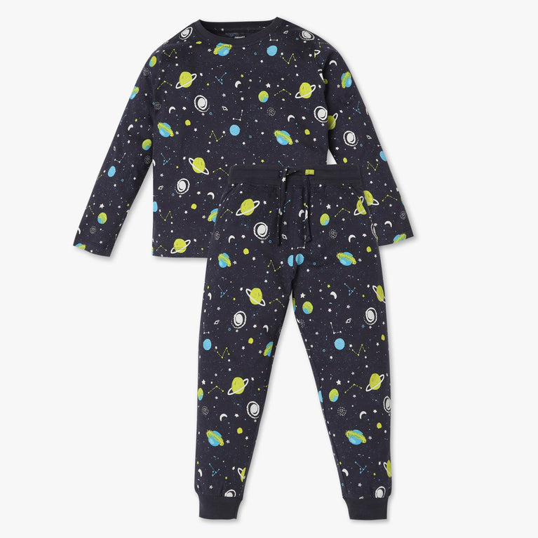 These sleepwear theme, printed pattern sleepwear sets has crew neck and full sleeve. Made from cotton, your kid's feel comfortable wearing the product.