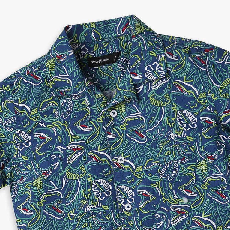 These casual shirt theme, printed pattern shirt has shirt collar and half sleeve. Made from cotton, your kid's feel comfortable wearing the product.