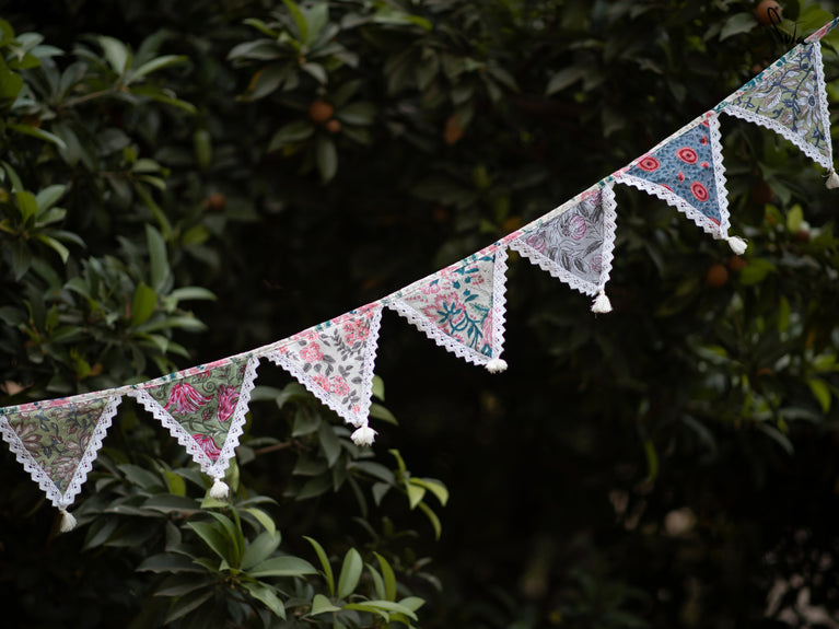 This is a versatile bunting that utilises leftover cotton slub fabric and transforms into a beautiful decor accent.