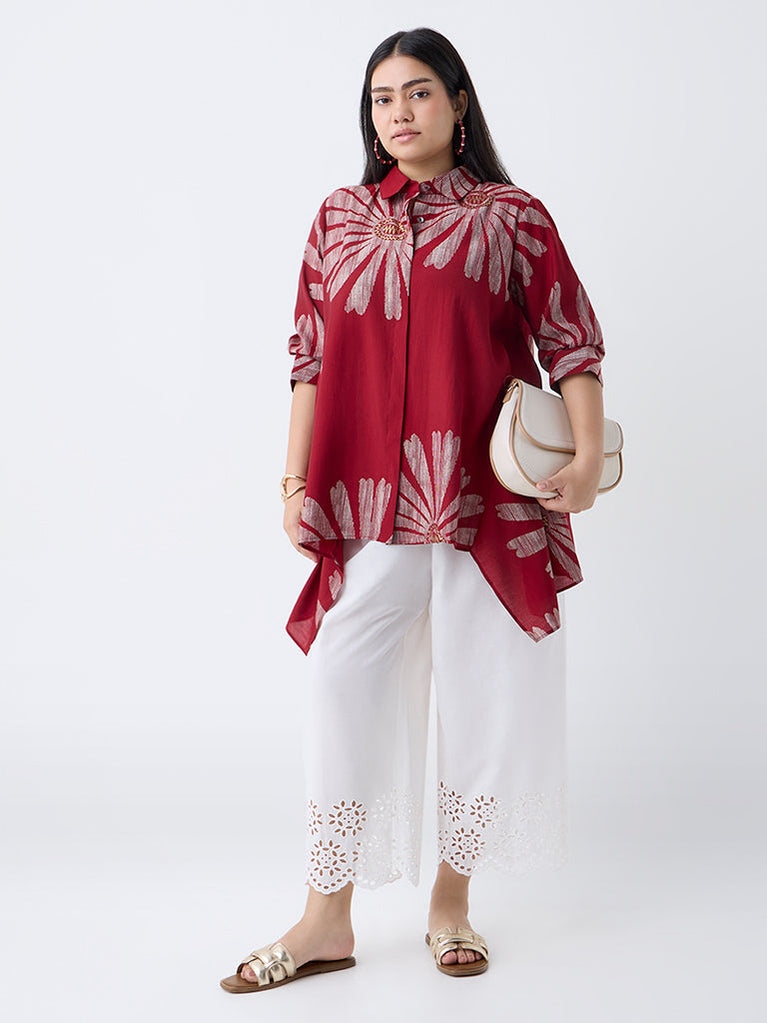 Diza Red Floral Lace Detailed Cotton Tunic