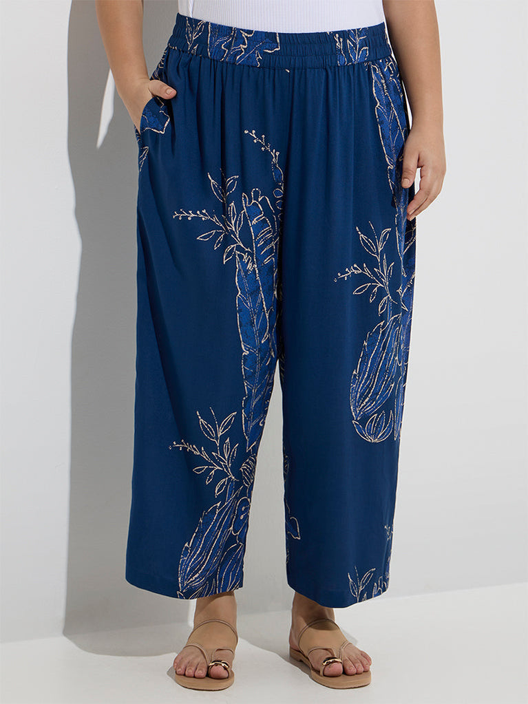 These indigo ethnic pants from Diza bring a playful twist to everyday styling with their lively botanical prints. Cut from a feather-light fabric, they offer ease without compromising on personality. The elasticated waistband is finished with adjustable drawstrings for a custom fit, while side pockets lend a dose of functionality.