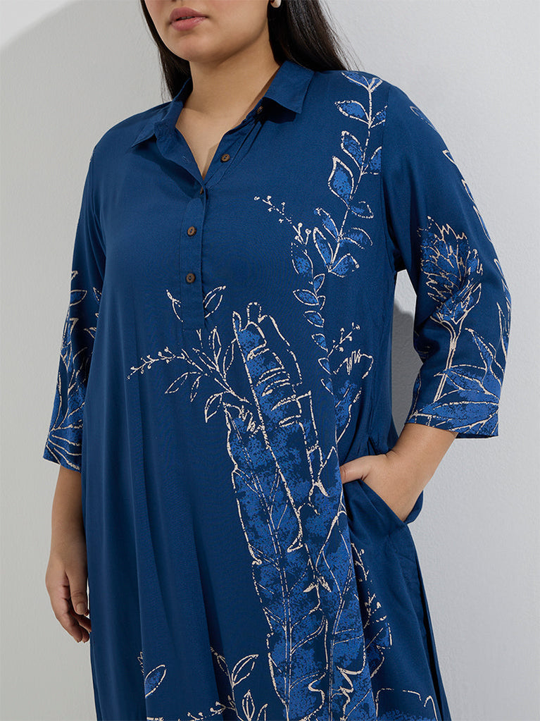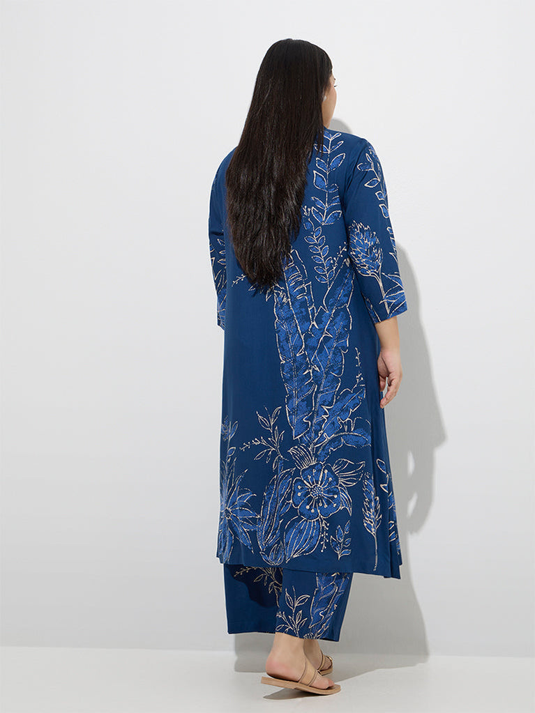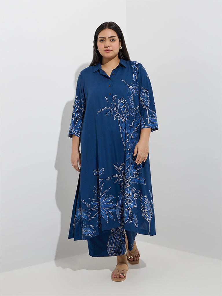 This indigo kurta from Diza is brought to life with graceful botanical prints that offer a refreshing contrast against its deep base. Tailored from a breathable fabric in a flattering A-line silhouette, it’s styled with a crisp collar, a short button-down placket, and three-quarter sleeves for a polished finish. Thoughtfully designed with a slip pocket, it blends everyday ease with artistic flair.