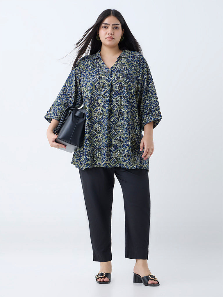 This indigo tunic from Diza showcases an all-over bandhani print that blends traditional charm with everyday ease. Designed with a notched neckline, a button placket and three-quarter sleeves, it’s a versatile pick for effortless day dressing.