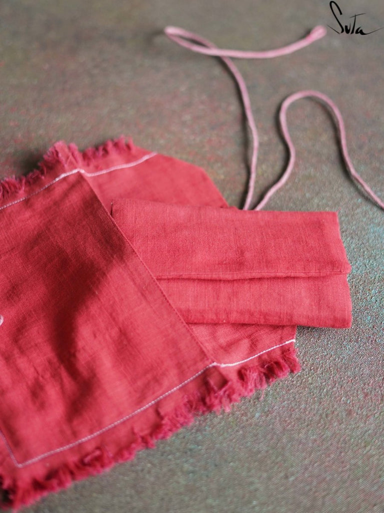 This is a fabric envelope to pack your Rakhi with extra love. The fabric of the envelope is cotton slub and the envelope contains a compartment to place money, a card with a sweet message, 2 small mul pouches with laung-elaichi and rice, respectively and a little coin pouch replica as a stamp.