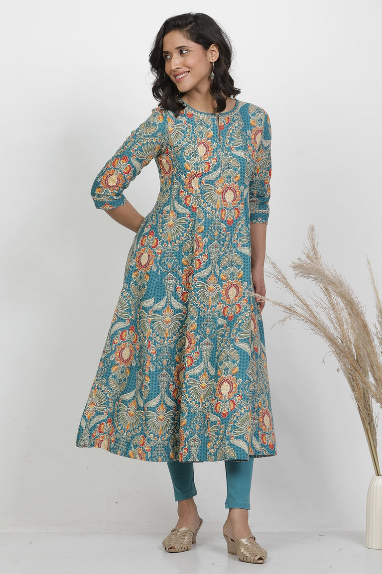 Introducing Our Cotton Blend Blue Straight Kurta Set, A Stunning Choice For A Polished And Sophisticated Look. This Elegant Ensemble Features A Straight Silhouette That Drapes Beautifully, Offering Both Comfort And Style. The Kurta Showcases A Charming Floral Print In Vibrant Hues, Adding A Touch Of Freshness And Grace To Your Wardrobe. The V-Neck Design Enhances The Kurta’S Refined Aesthetic, Creating A Flattering Neckline That Suits A Variety Of Accessories. For A Cohesive And Chic Appearance, The Set Includes Matching Straight Pants That Perfectly Complement The Kurta’S Design. Ideal For Both Casual Outings And Special Occasions, This Blue Straight Kurta Set Ensures You Look Effortlessly Stylish And Refined.