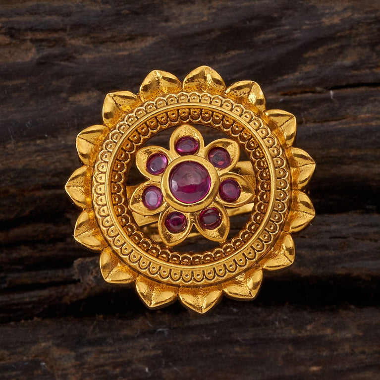 Antique Finger Ring Embellished with stonesRedefine elegance as you adorn this sizzling bridal ring from our collection. This ring has a copper alloy base that makes it too comfortable to wear and flaunt. The stonework on the floral design is like a crowning stroke for this ring. So, what’s stopping you from adding this piece of elegance to your bridal attire?