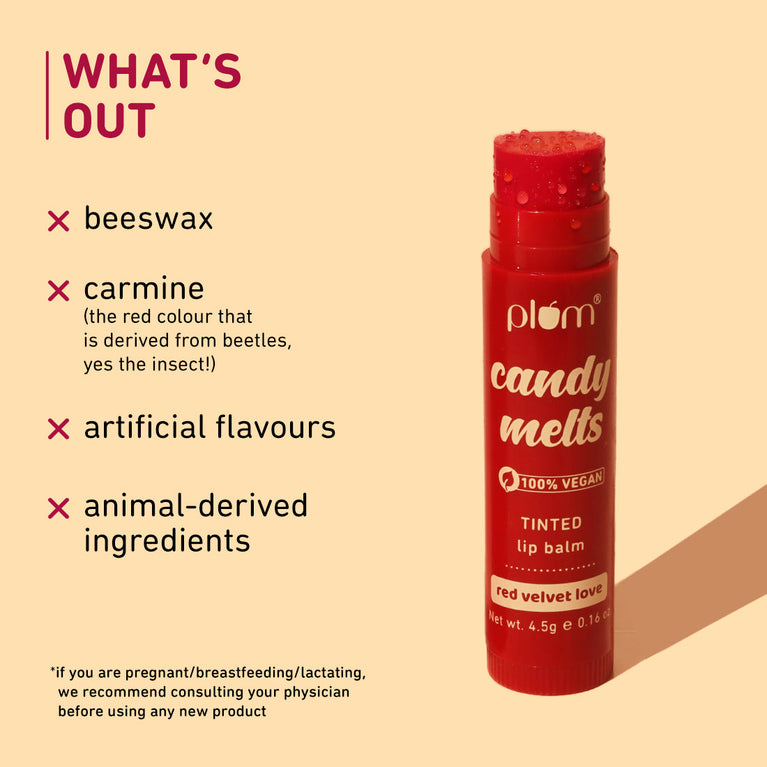 Candy Melts Red Velvet Lip Balm benefits: * hydrates dry & chapped lips * provides long lasting moisturization * adds a sheer-tint with a soft shine * nourishes & protects