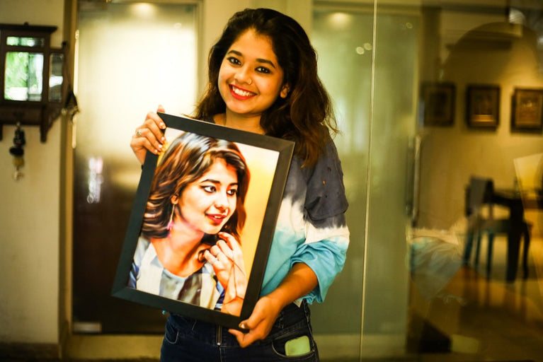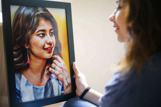 The photo is converted into a digital portrait by a professional and framed using a wooden frame. All you have to do is share a picture with us and we'll create the perfect gift.