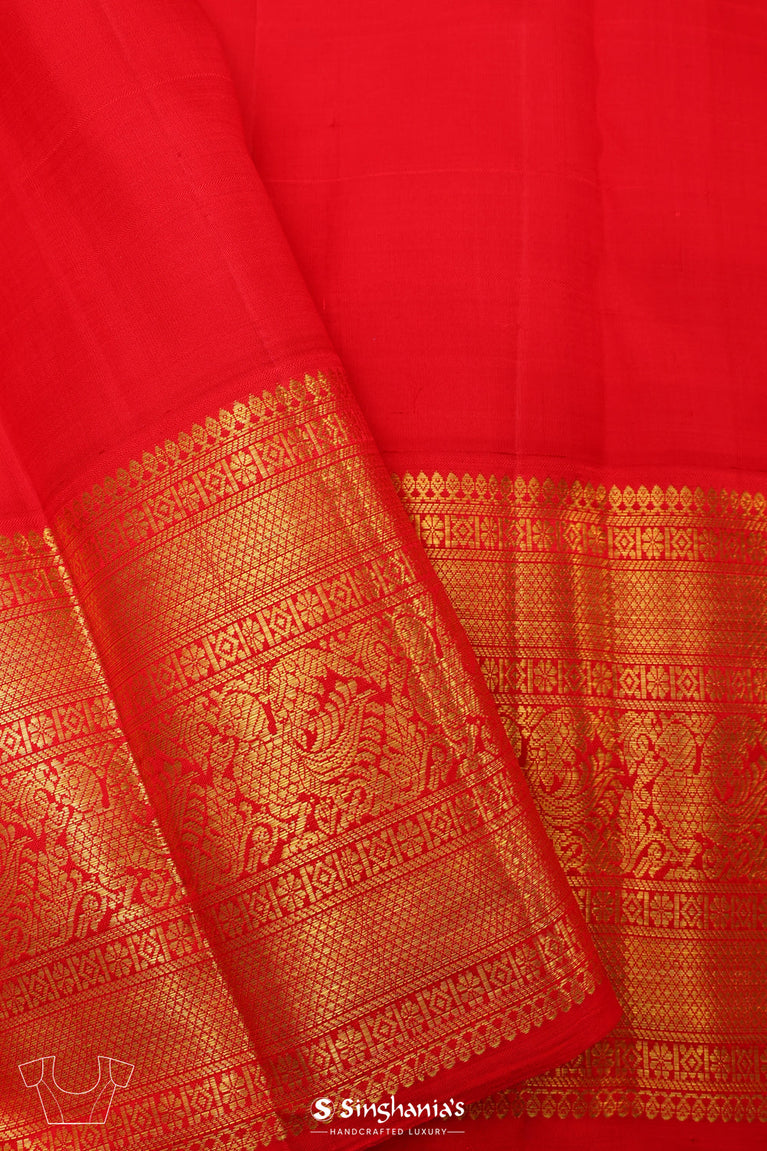 Chilli Red Banarasi Silk Saree With Floral Jaal Weaving