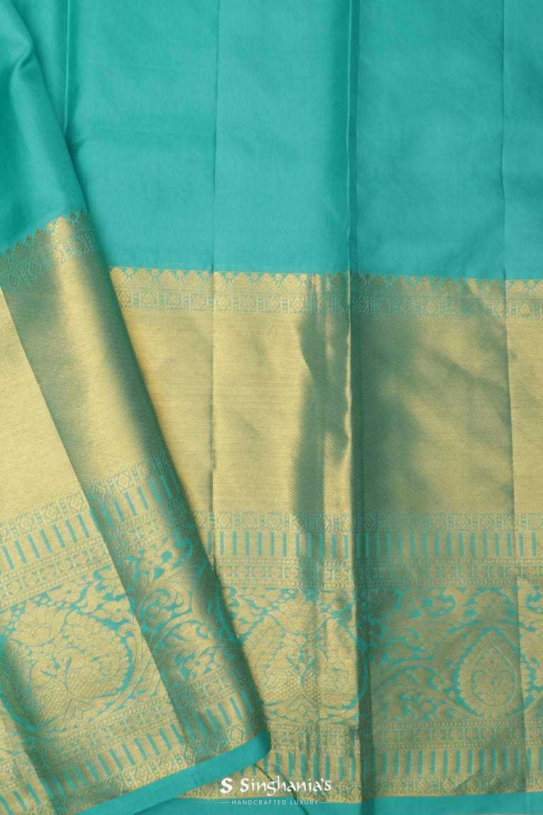 Cyan Blue Kanjivaram Silk Saree With Floral Jaal