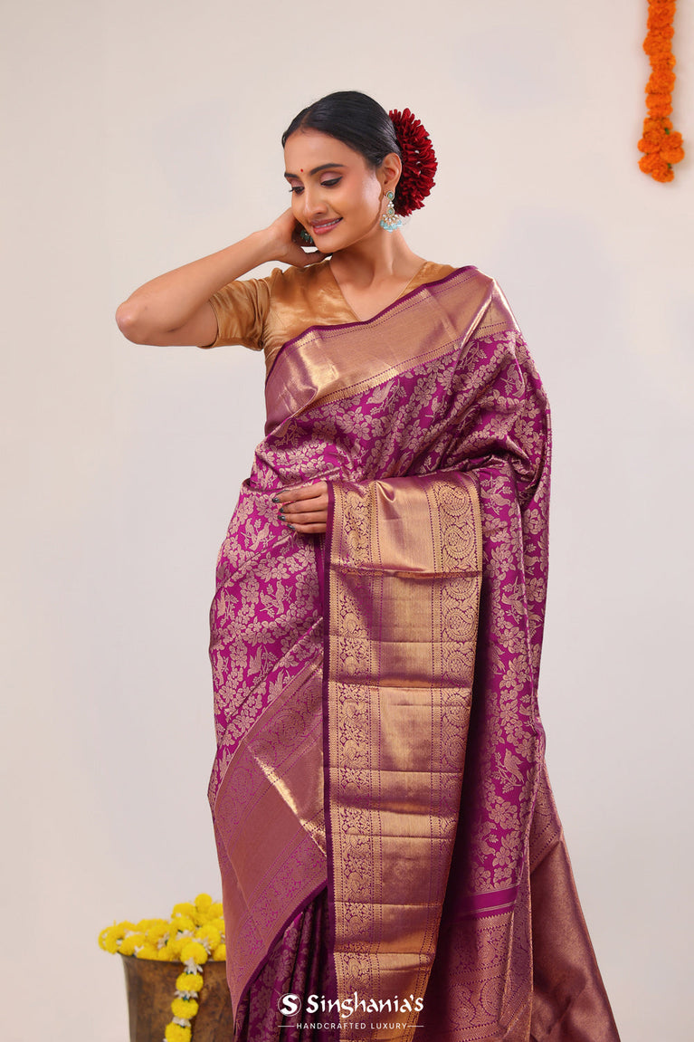 Dark Magenta Purple Kanjivaram Silk Saree With Floral Jaal Weaving