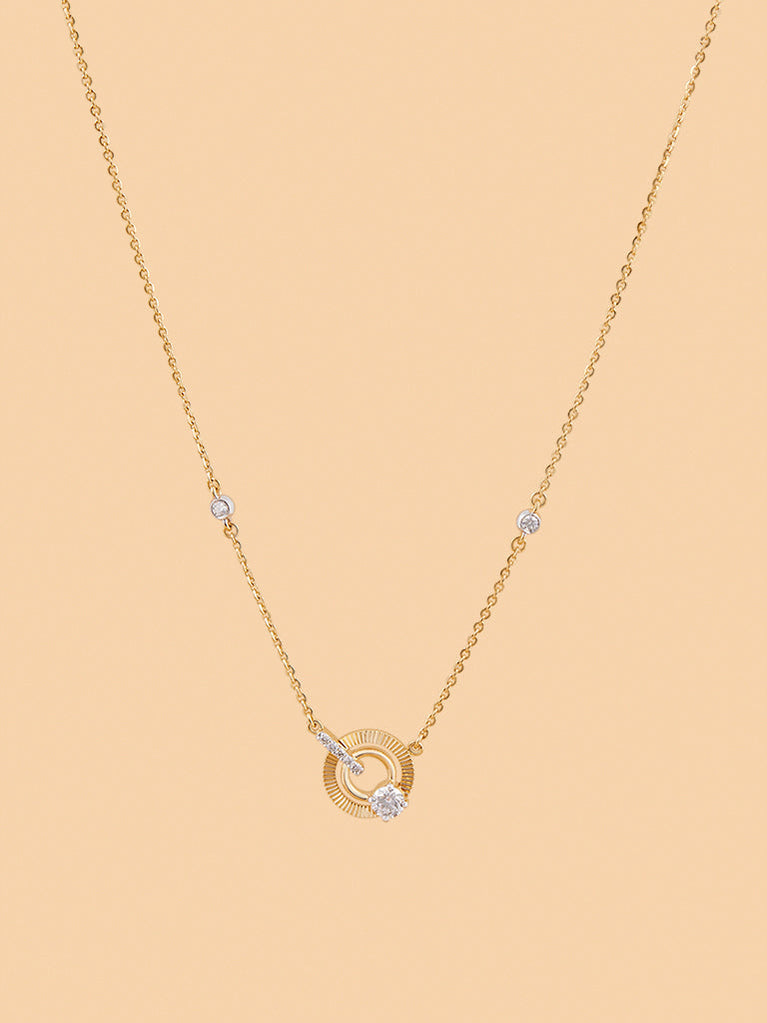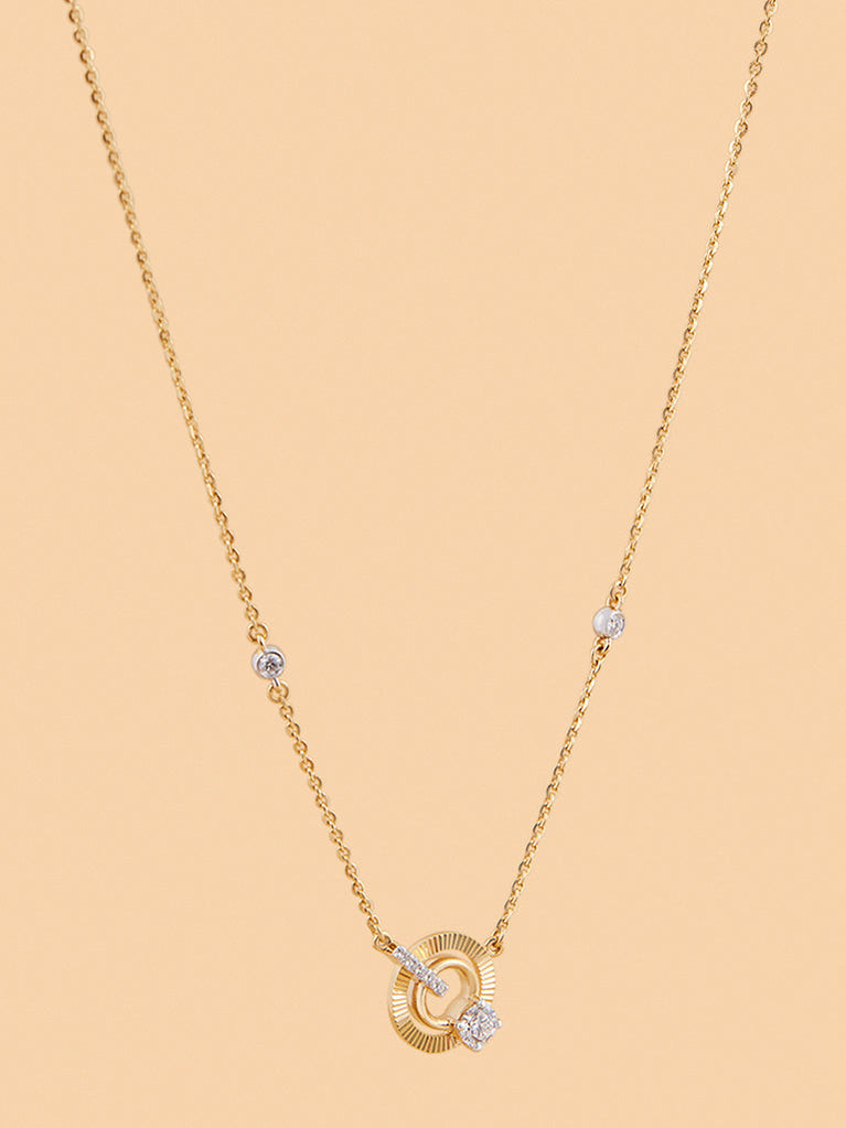 Enjoy modern elegance with this dual circle lab diamond pendant necklace. Made in gold vermeil, it offers a sleek design that complements any style.